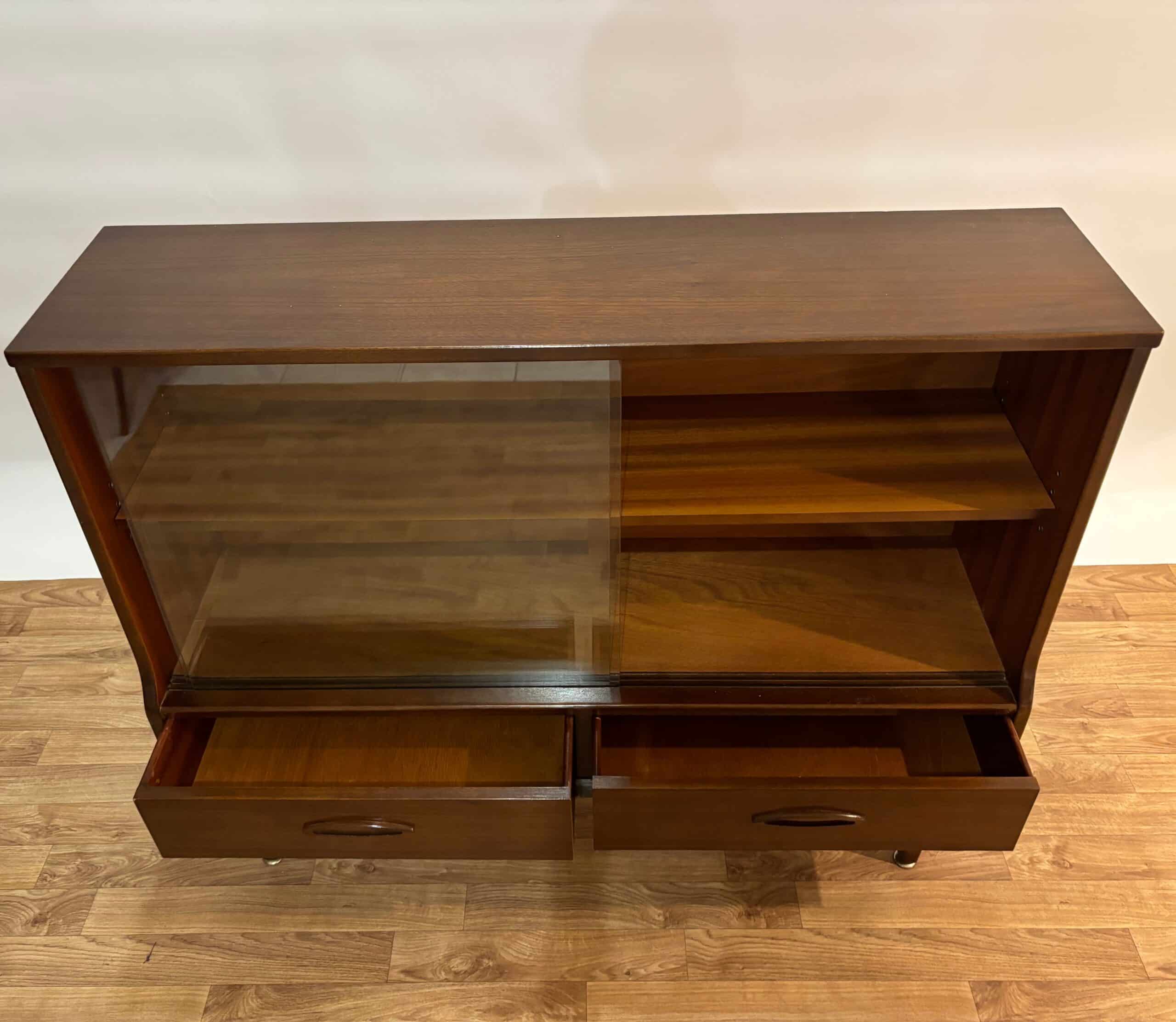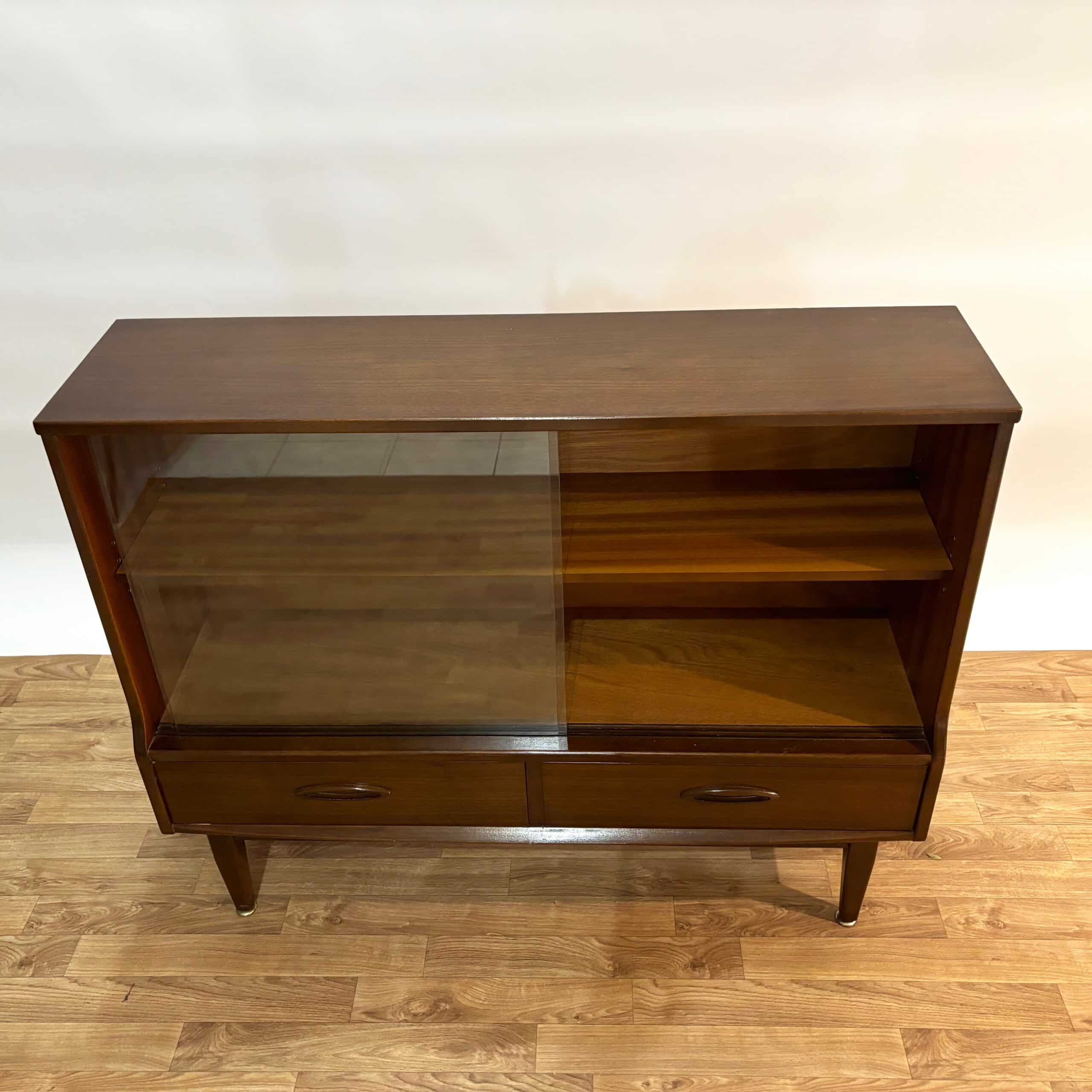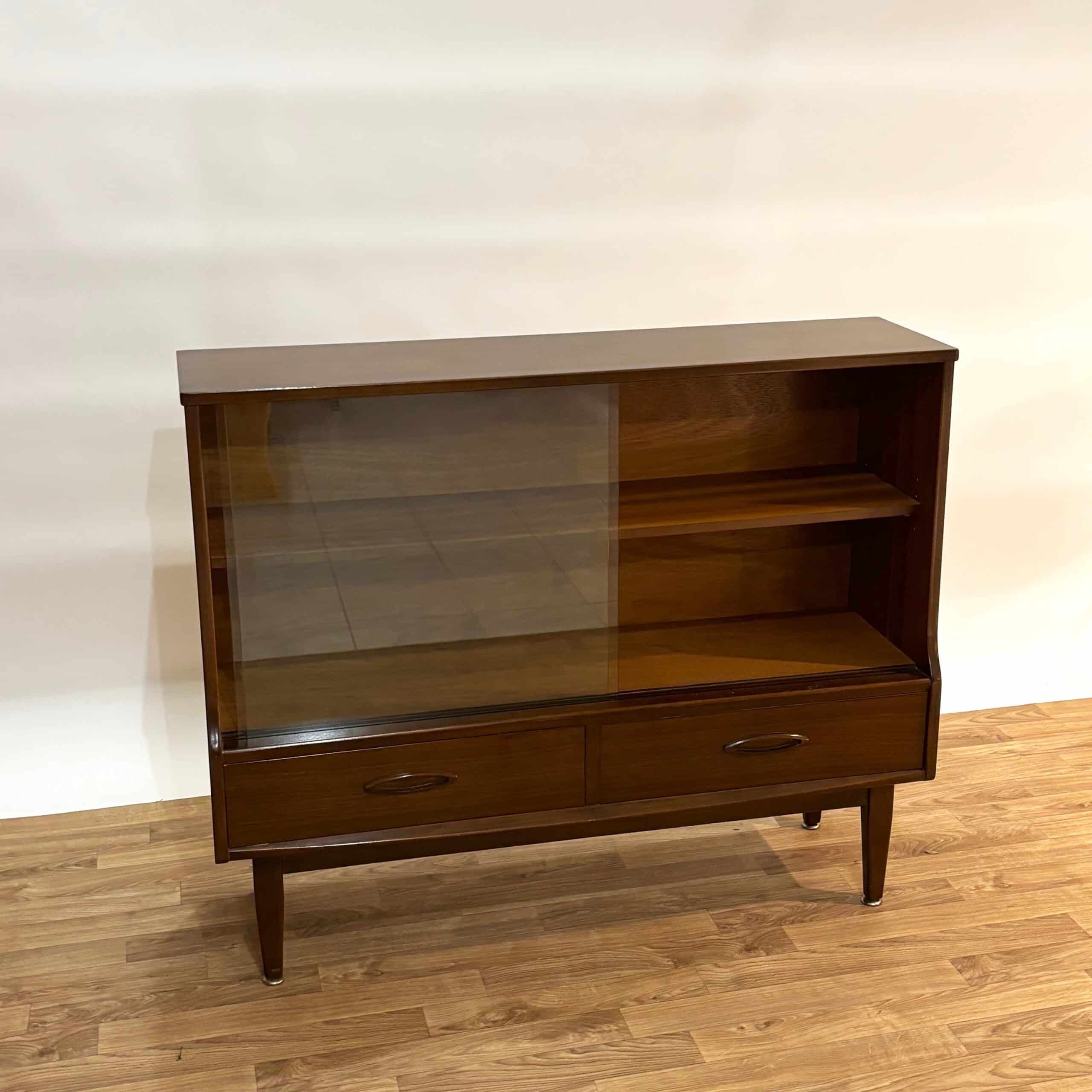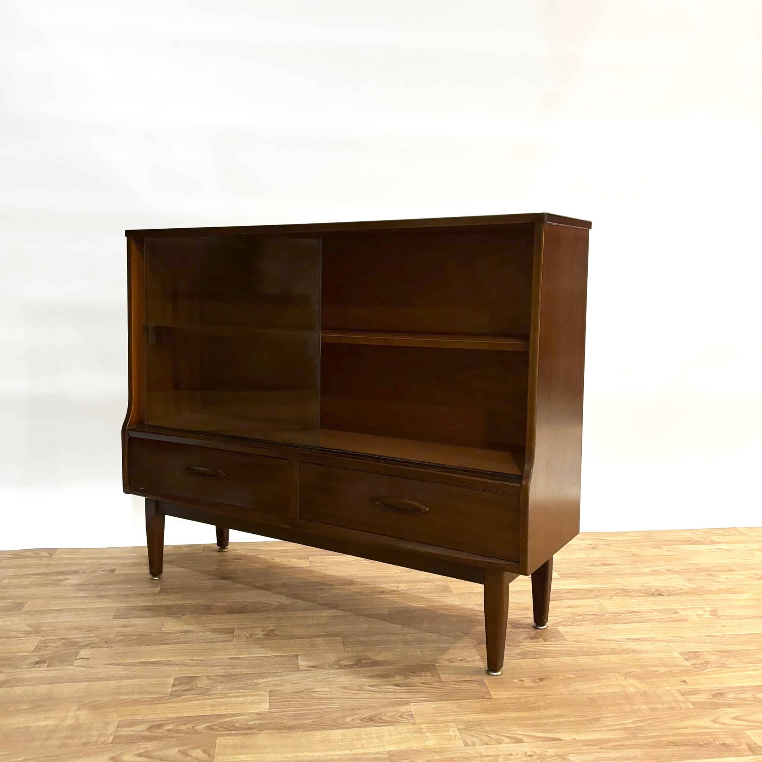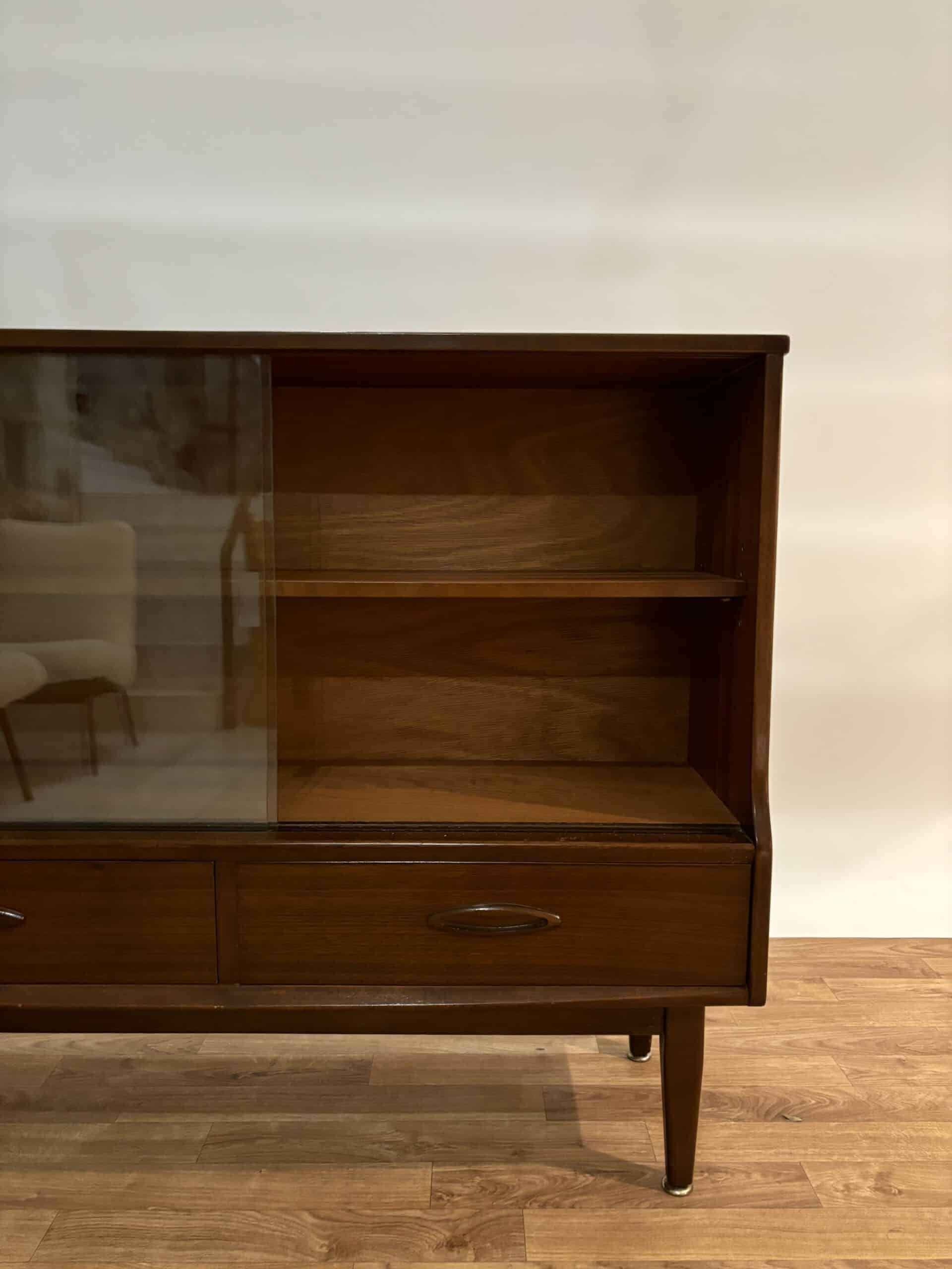 Très jolie bibliothèque des années 60 de style scandinave signée Jentique, que l’on reconnait grâce à ses élégantes poignées en amande. Peu profonde, c’est le meublée rangement idéal pour l’entrée, le bureau ou le salon.