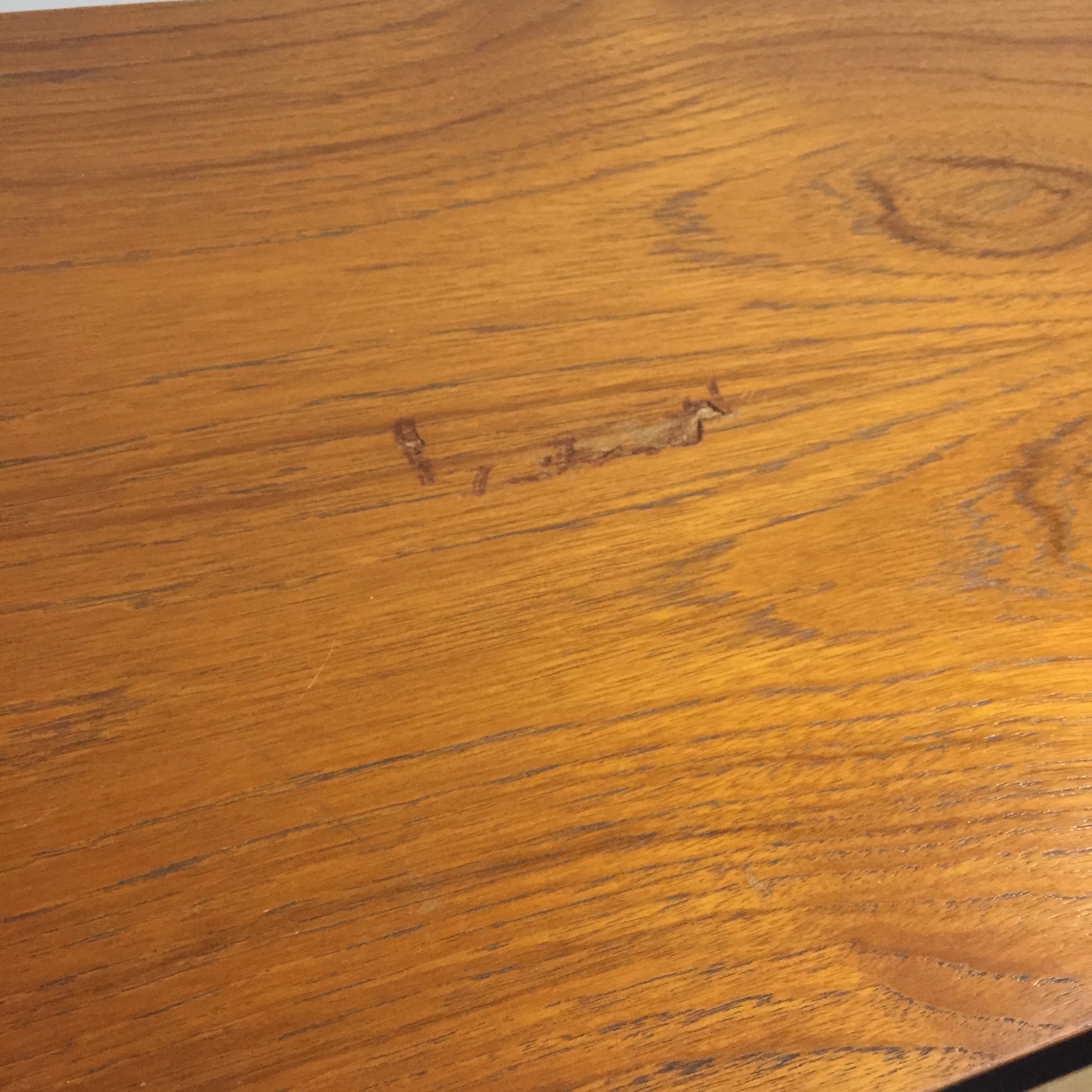 Très bon état, quelques traces d’usure normale du temps dont une rayure sur le dessus. Il manque la porte en verre à droite.