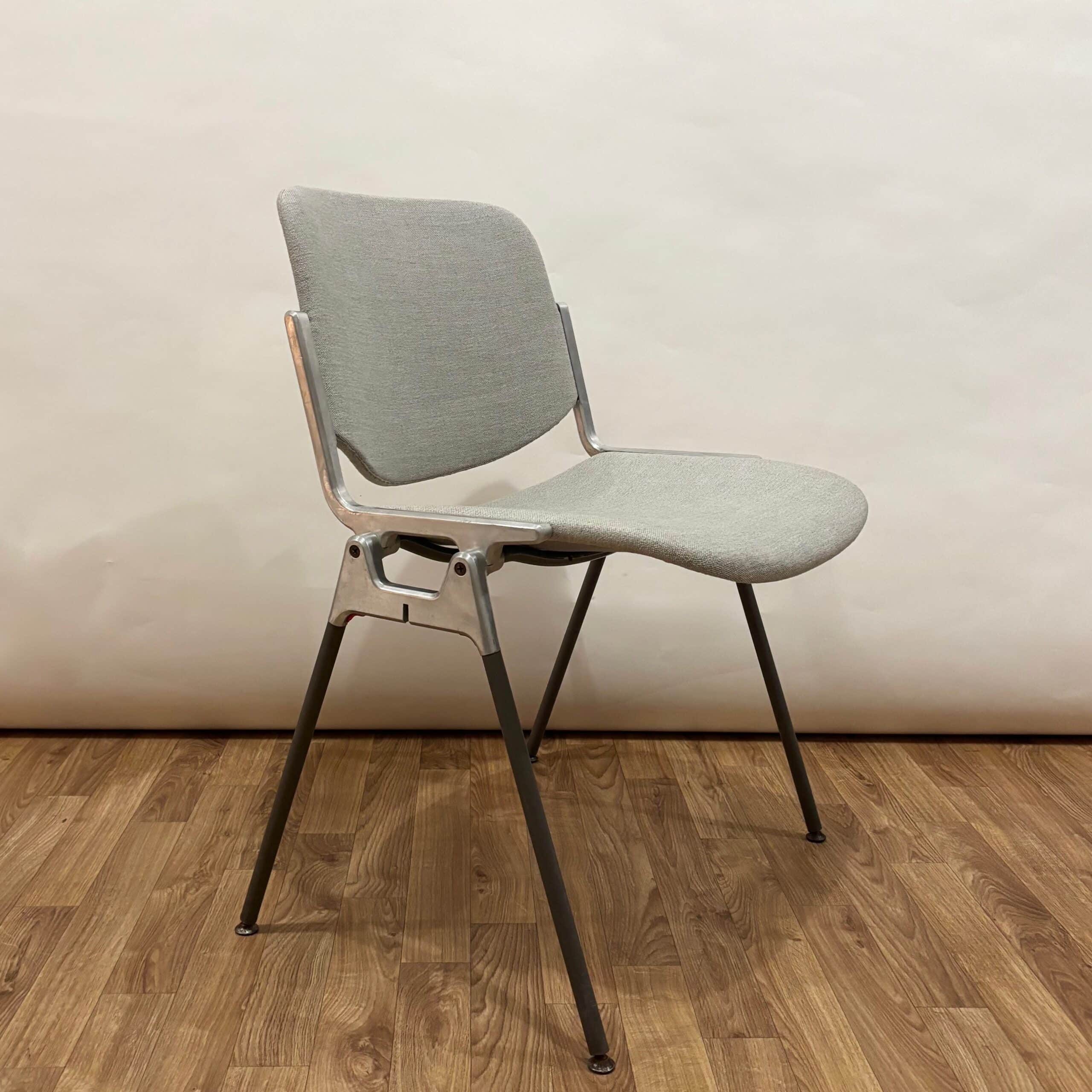 Une touche de design italien avec cette chaise des années 70 de Giancarlo Piretti pour Castelli. Piètement en métal gris et chromé, petits patins pivotants, assise et dossier larges et confortables, elle a tout pour plaire!