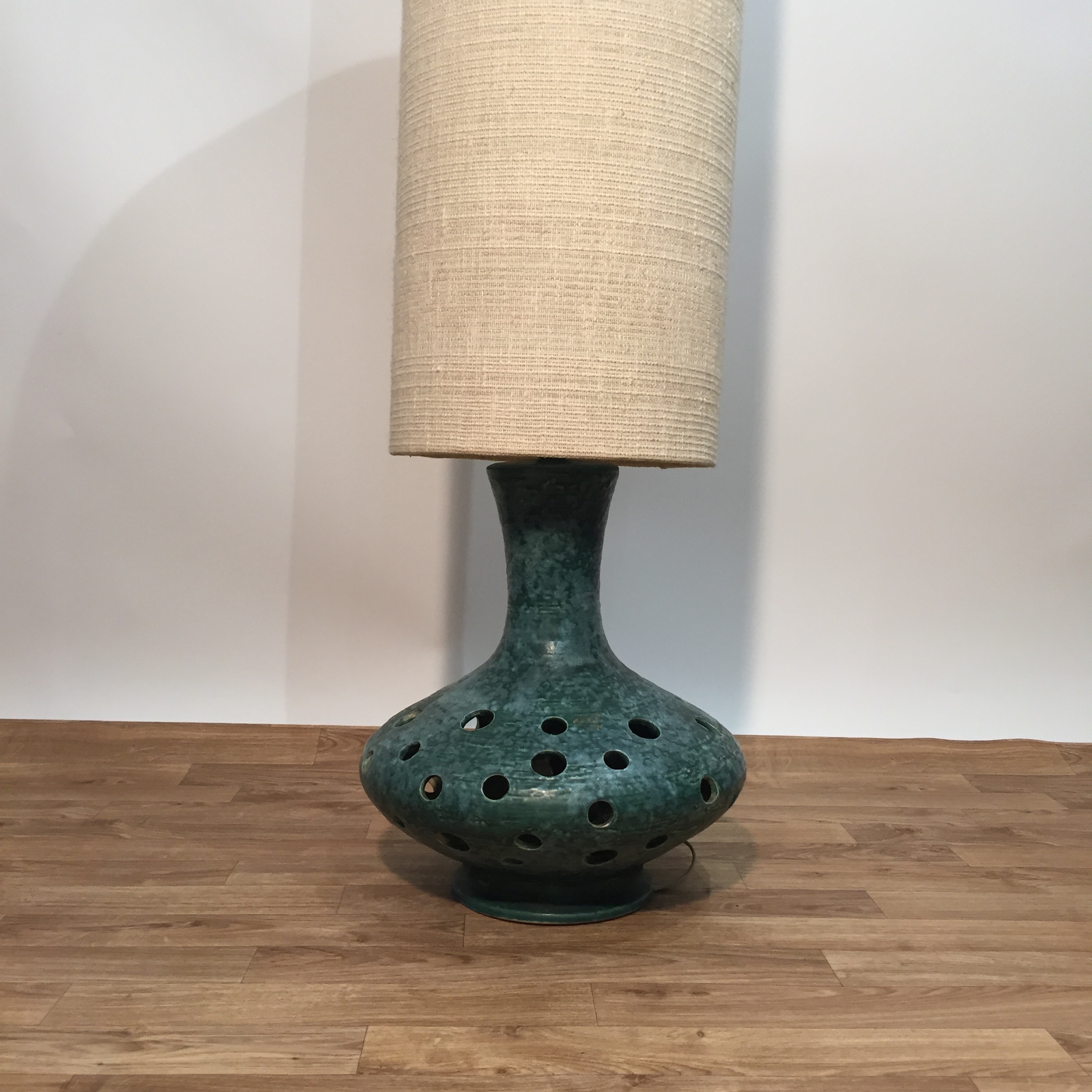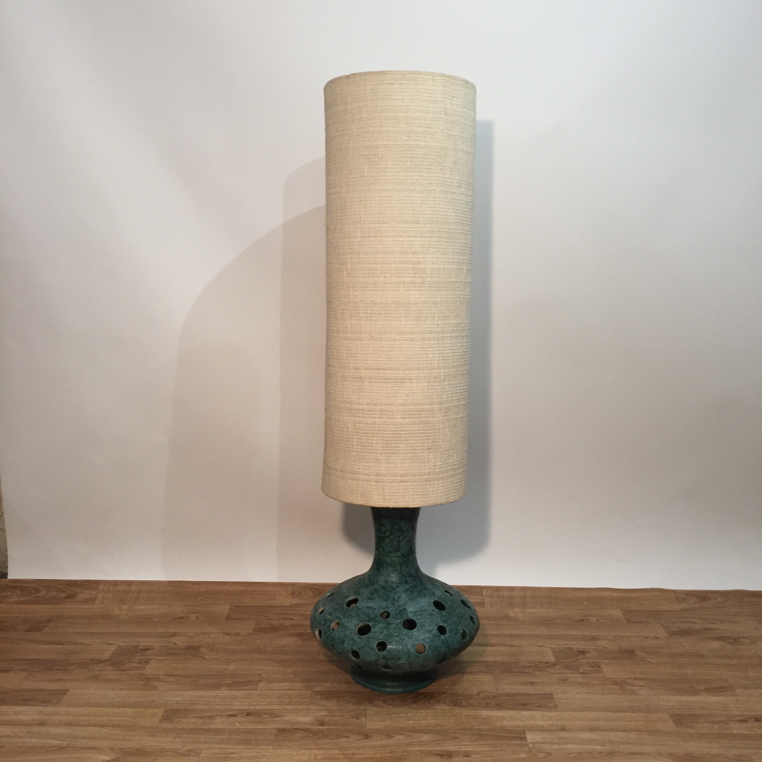 Très bon état, l’abat-jour des années 70 a quelques traces d’usure normale du temps mais globalement en très bon état, le pied est en parfait état, la lampe fonctionne très bien. Double éclairage :  dans l’abat-jour mais également dans le socle.