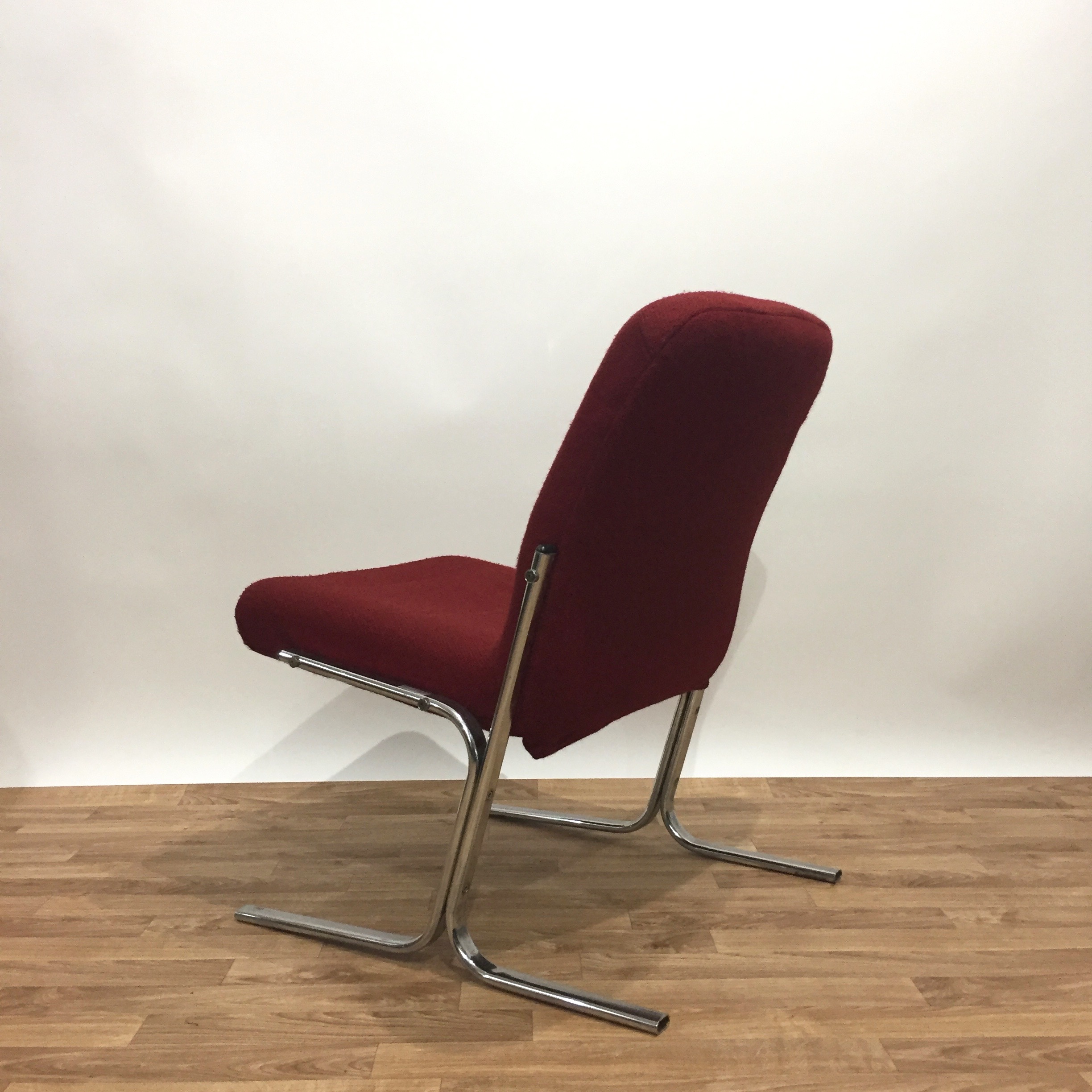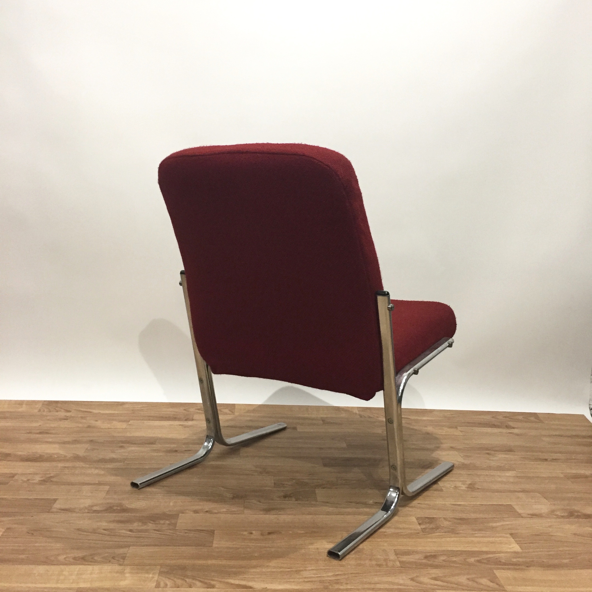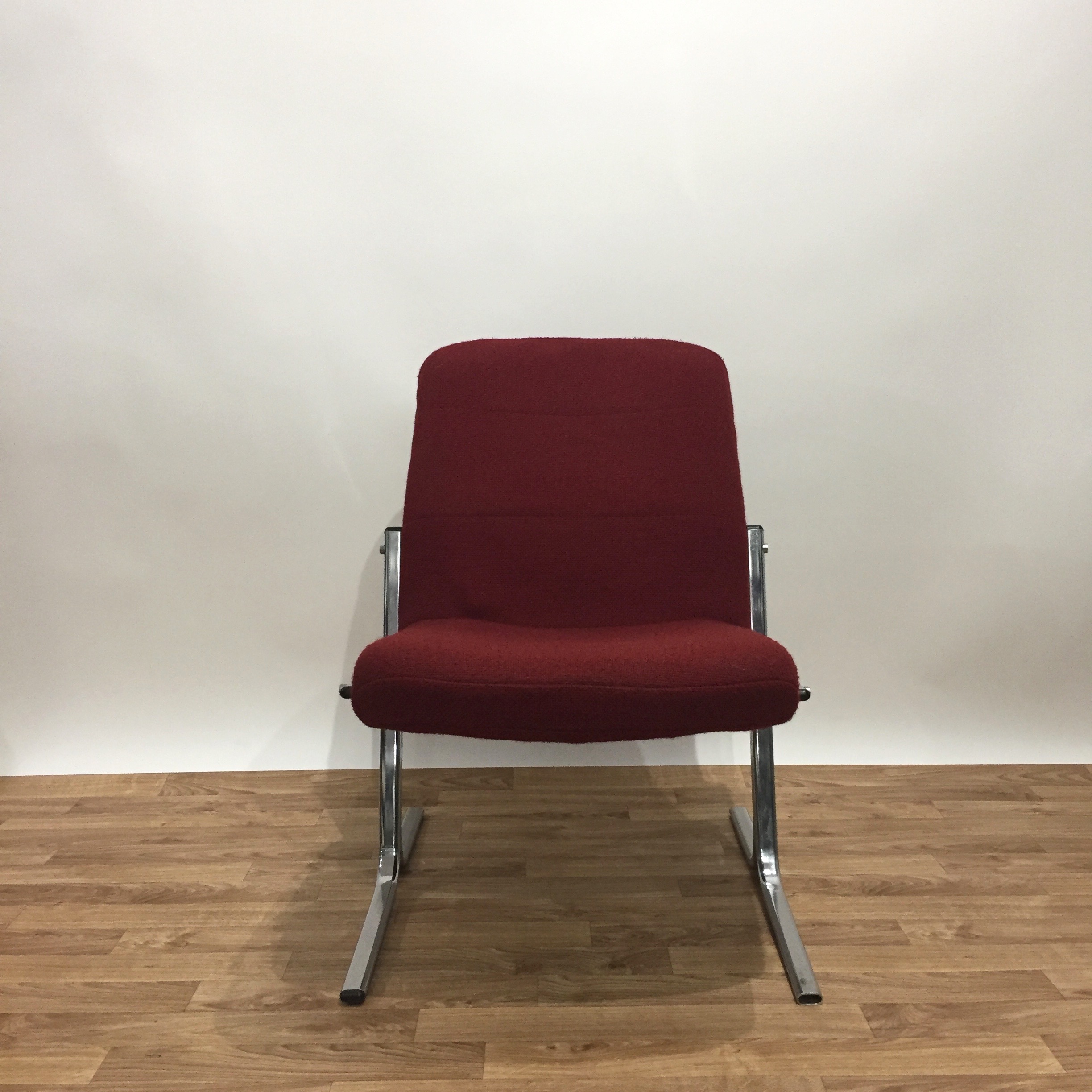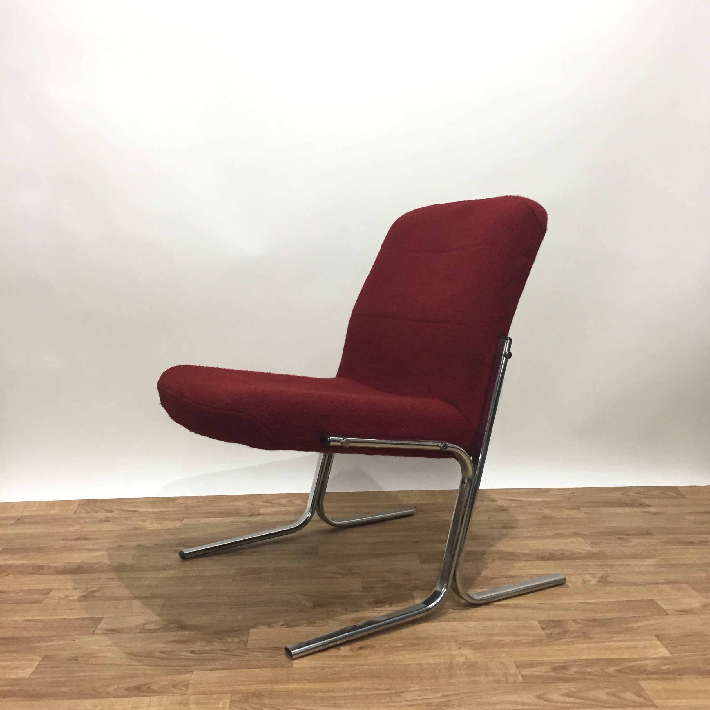 Très belle chauffeuse des années 70/80 en métal chromé et tissu d’origine en lainage rouge très agréable. Peu encombrante et confortable, elle trouvera facilement sa place dans la chambre ou le salon.