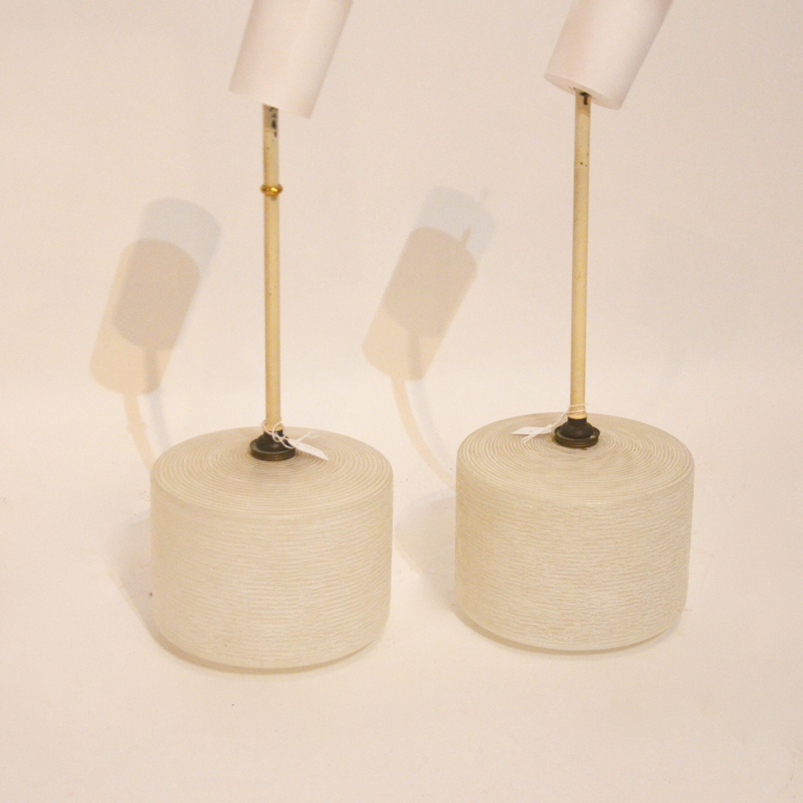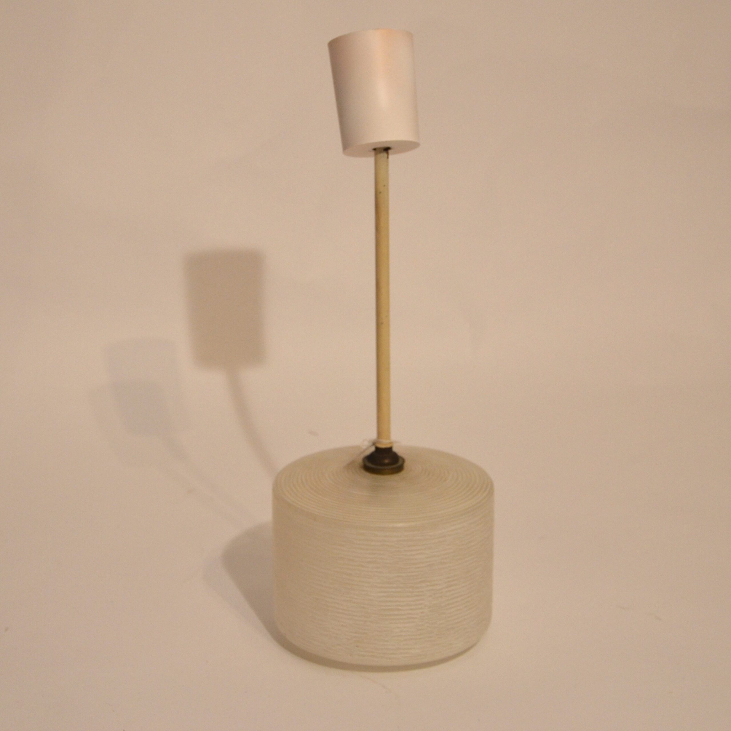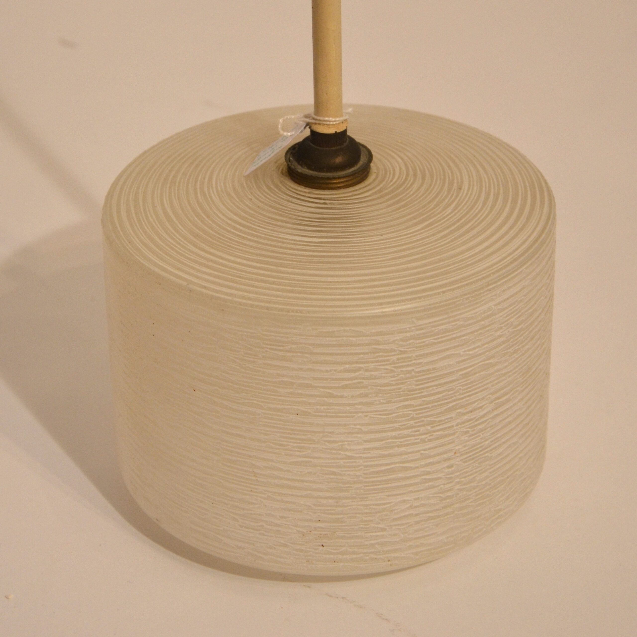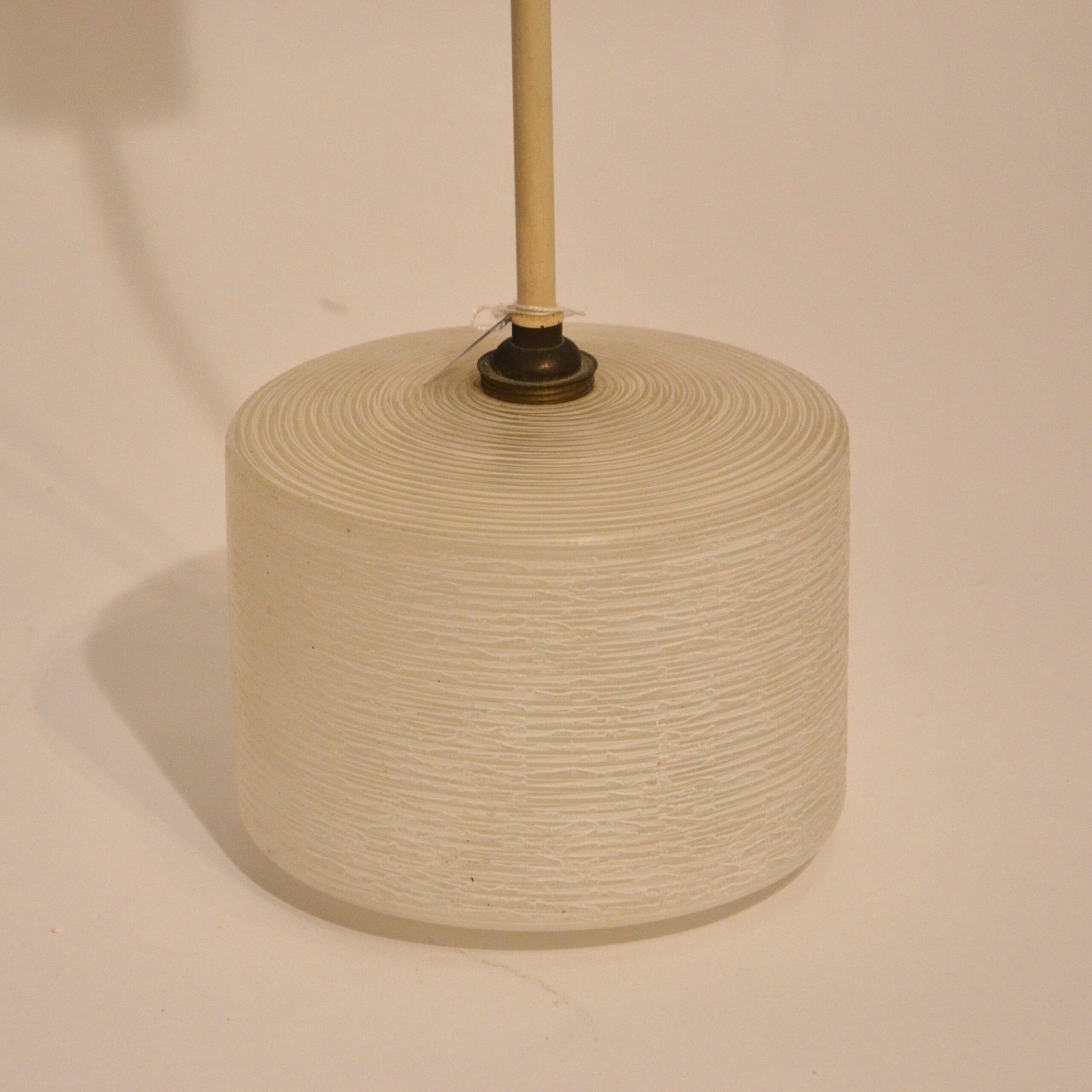 Jolies suspensions en verre granité des années 60, suspendues par une tige en métal. Sobres et élégantes, elles apporteront une belle lumière à la cuisine ou dans l’entrée. Le prix est indiqué pour une lampe.