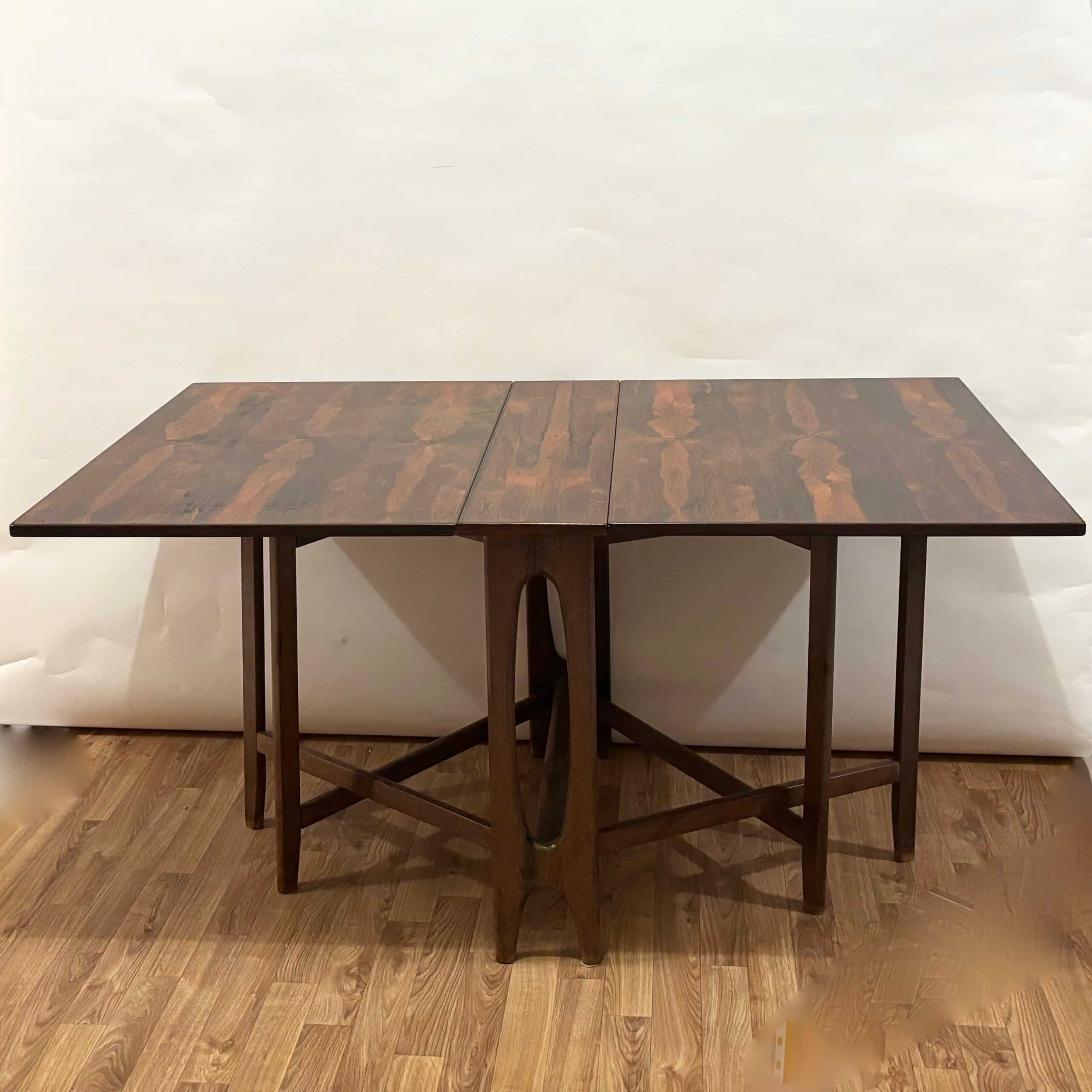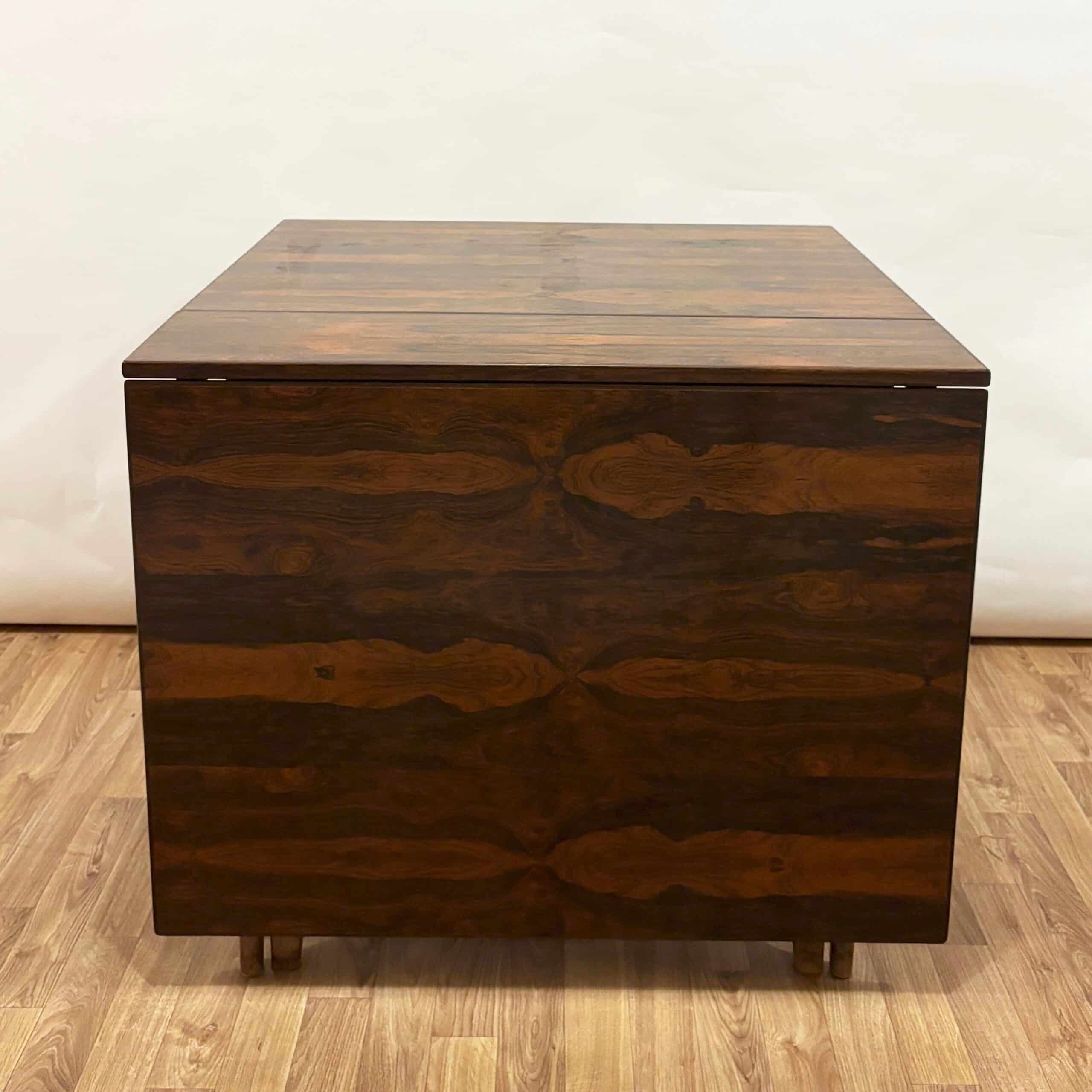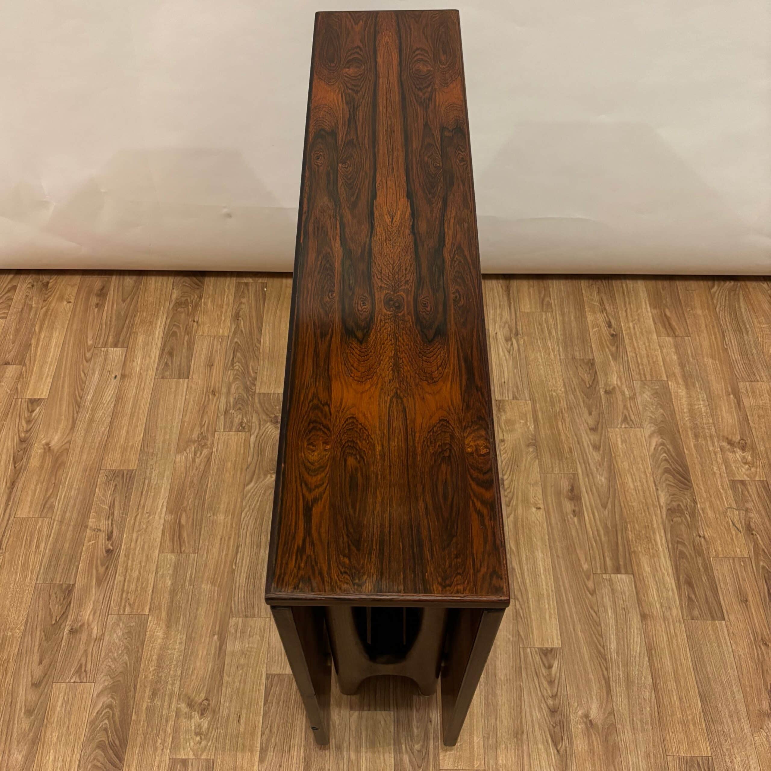 Superbe table à manger de style scandinave des années 60 palissandre de Rio. Très belle pièce pratique car le plateau se plie des deux côtés pour se transformer en console de 30 cm de profondeur.