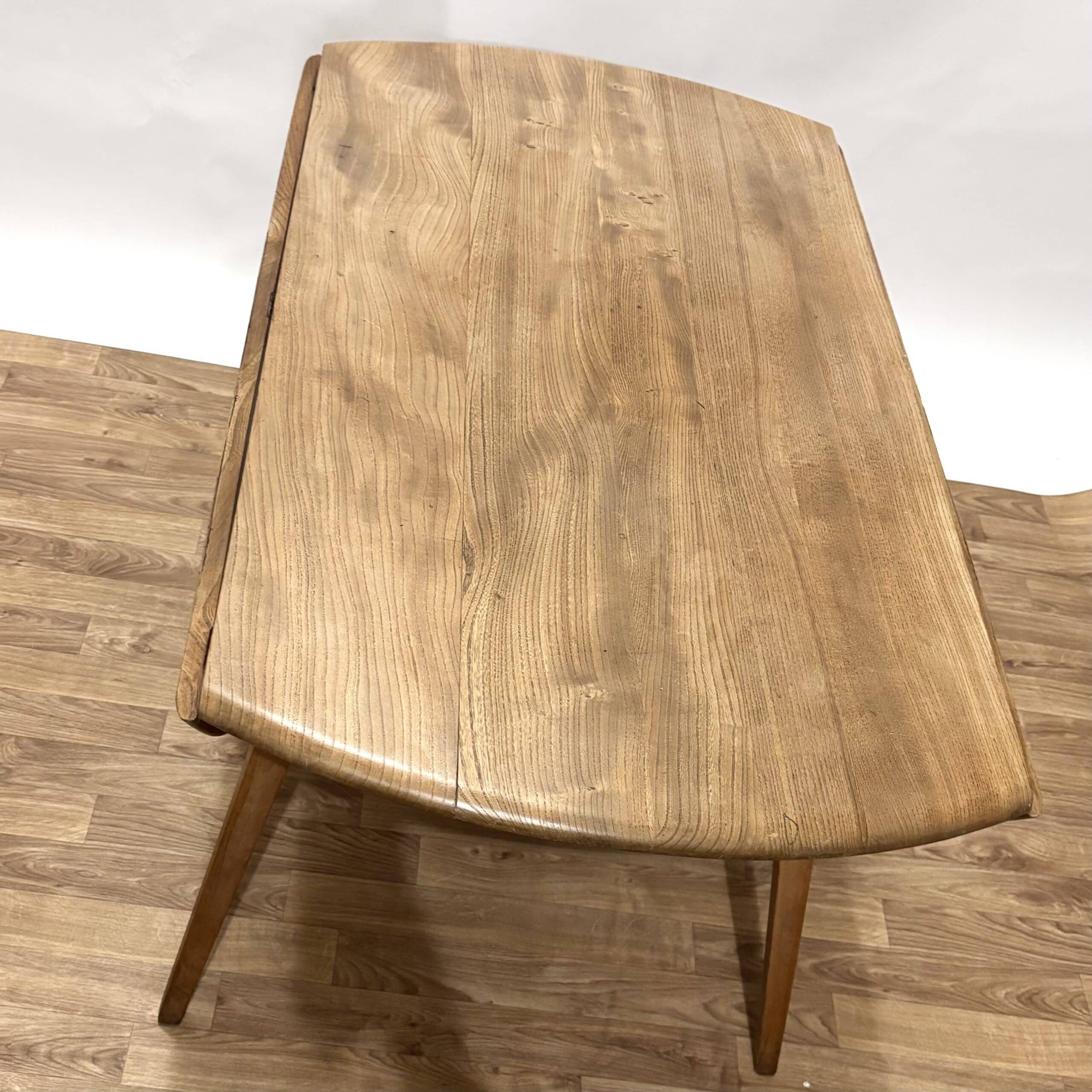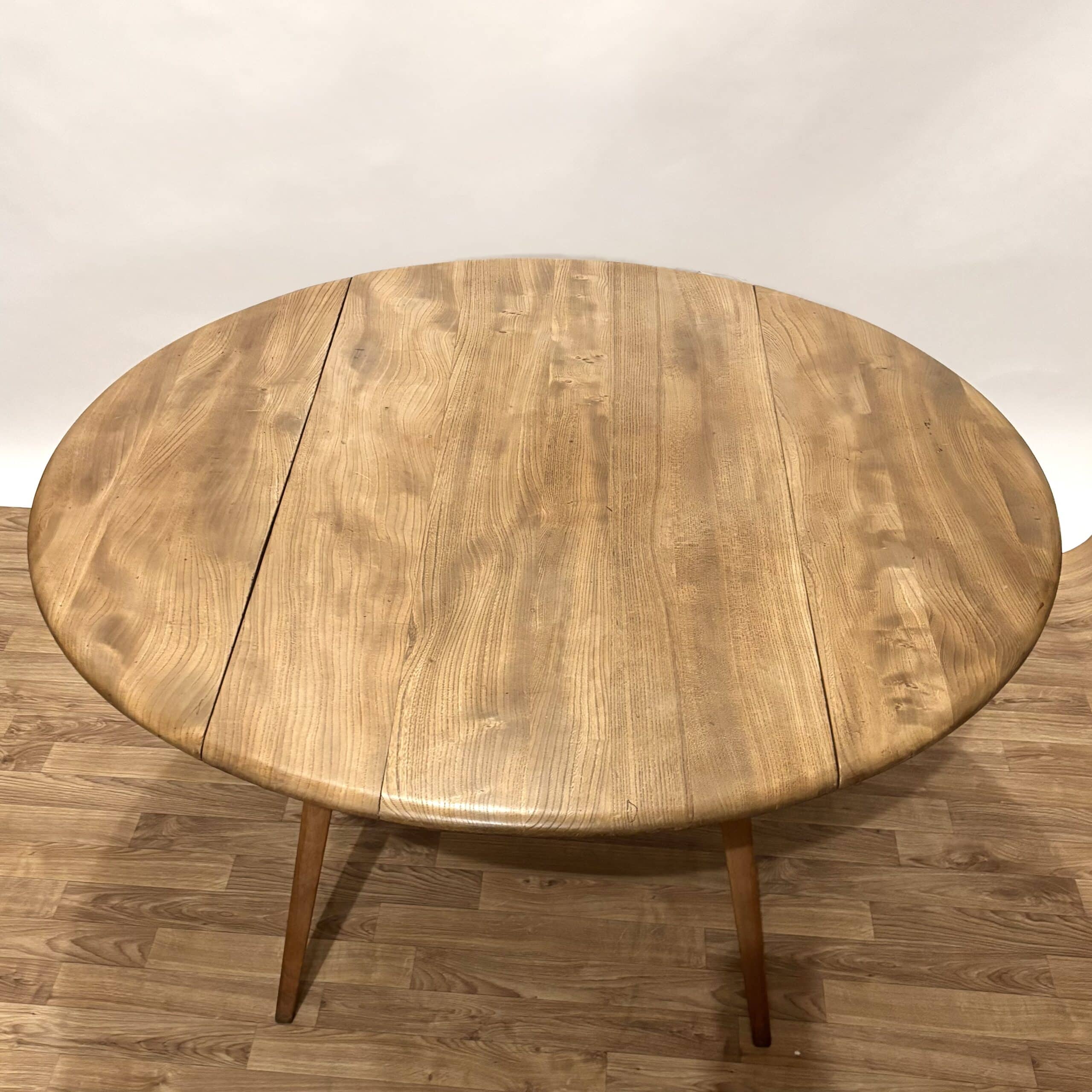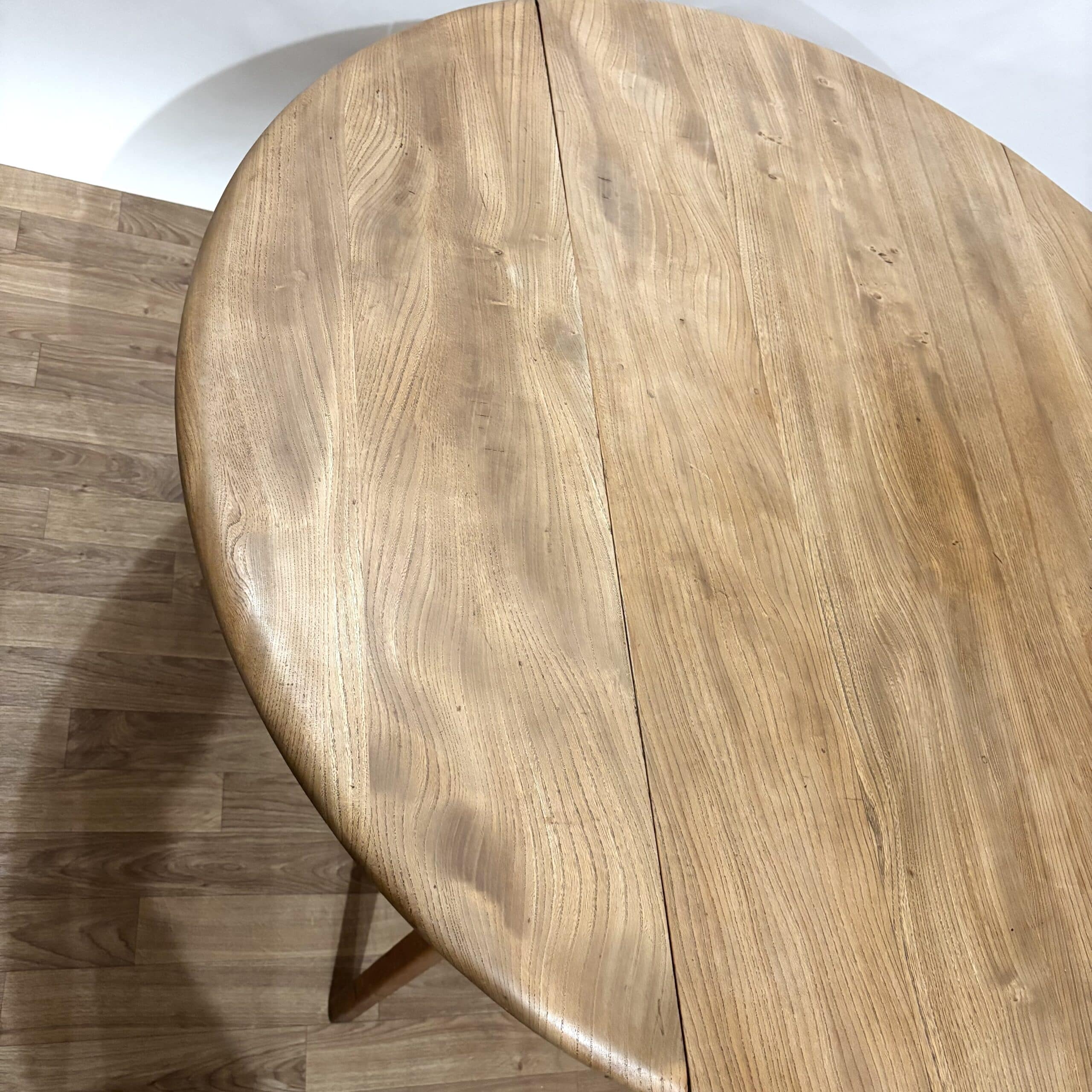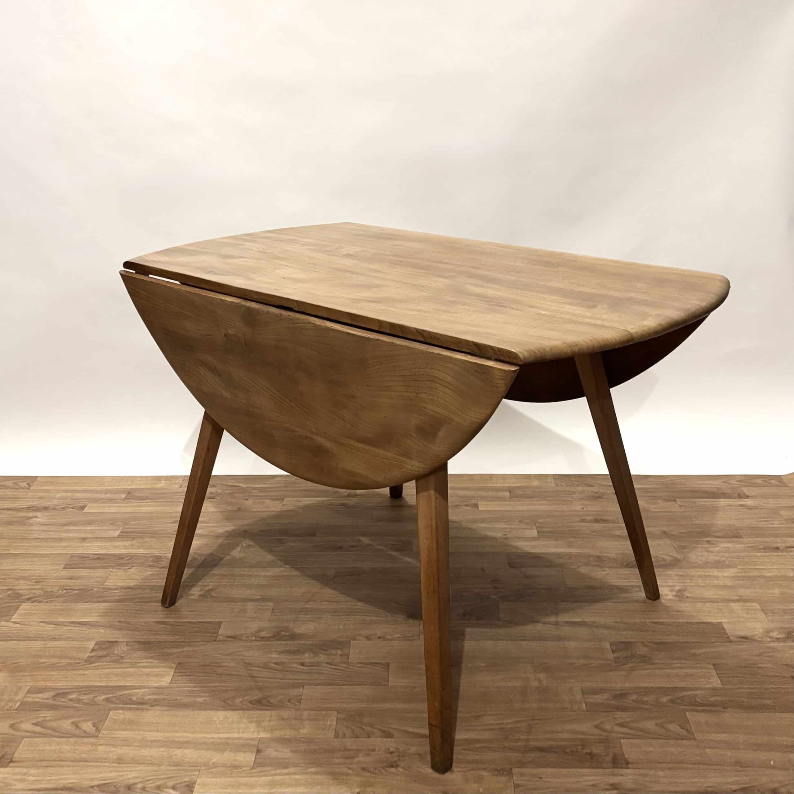 Plateau en orme massif, pieds compas évasés, jolie ovalie, cette table à manger se plie en deux pour vous plaire! Signée Ercol dans les années 60, c’est un modèle très pratique avec deux battants que l’ont peut ouvrir alternativement ou ensemble pour accueillir 4 à 6 personnes.