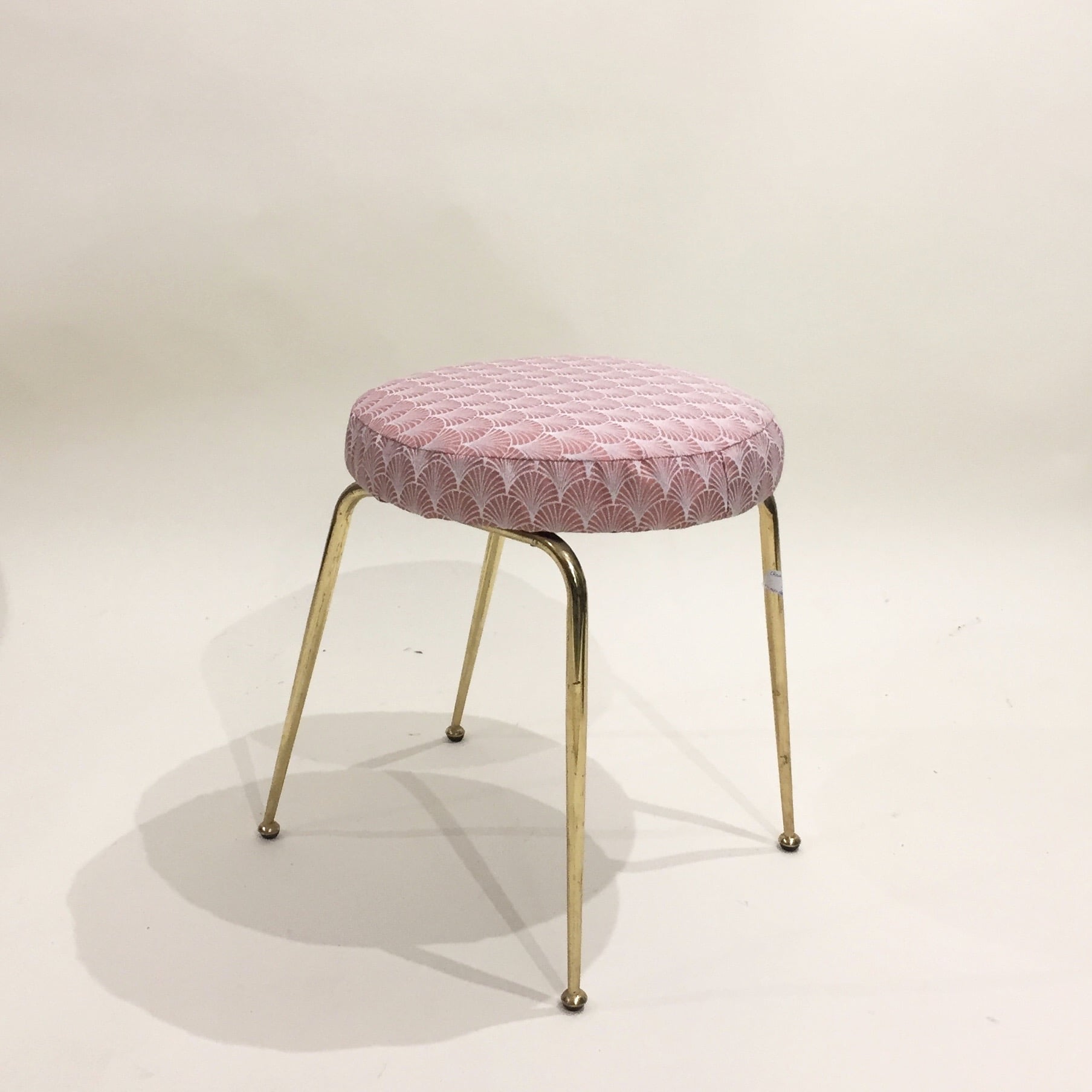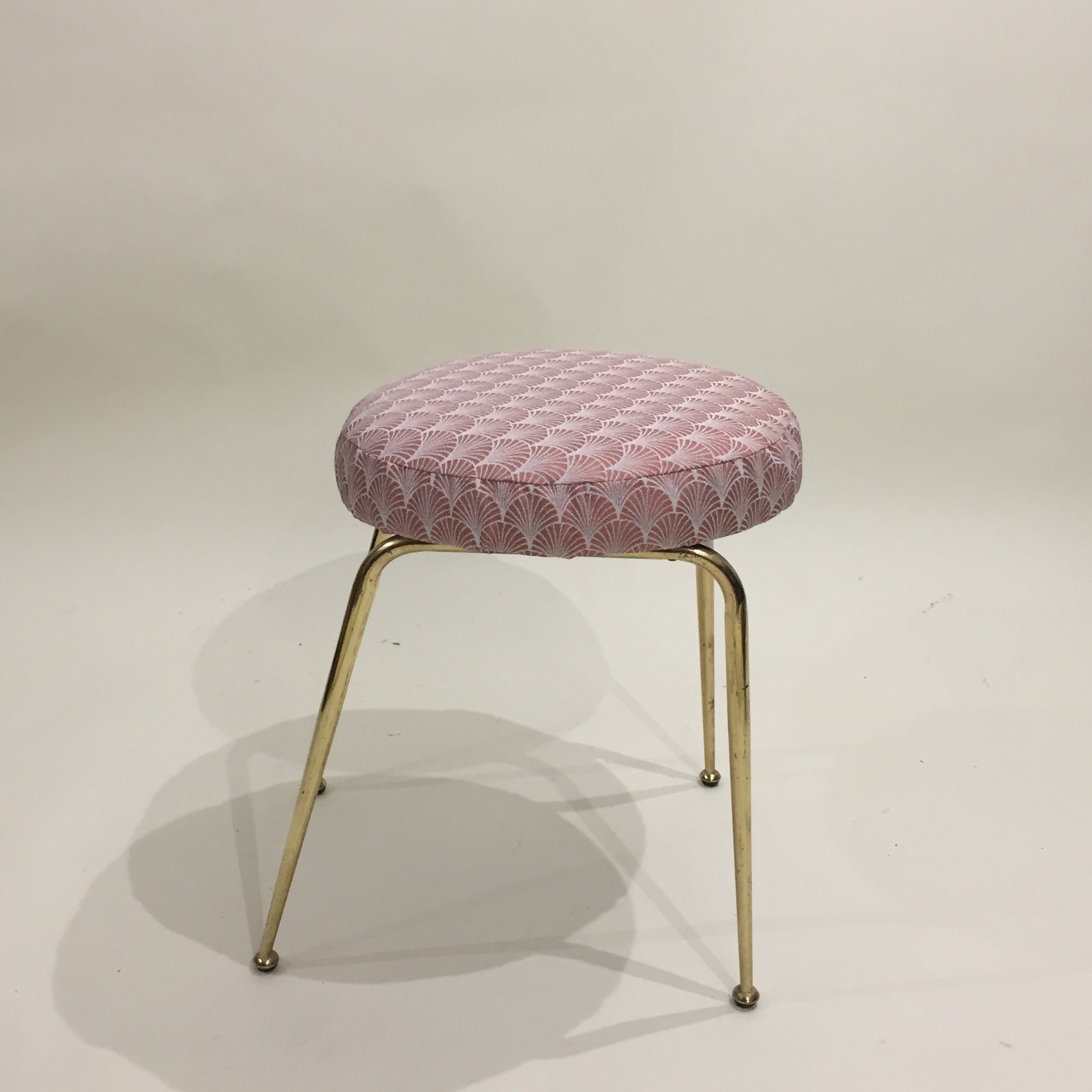 Qu’il est joli ce petit tabouret des années 60 avec ses pieds en métal doré que nous avons retapissé en rose pour apporter une touche de couleur poudrée à votre déco. On peut l’utiliser dans une entrée pour mettre ses chaussures, pour le bureau ou comme siège d’appoint dans le séjour .