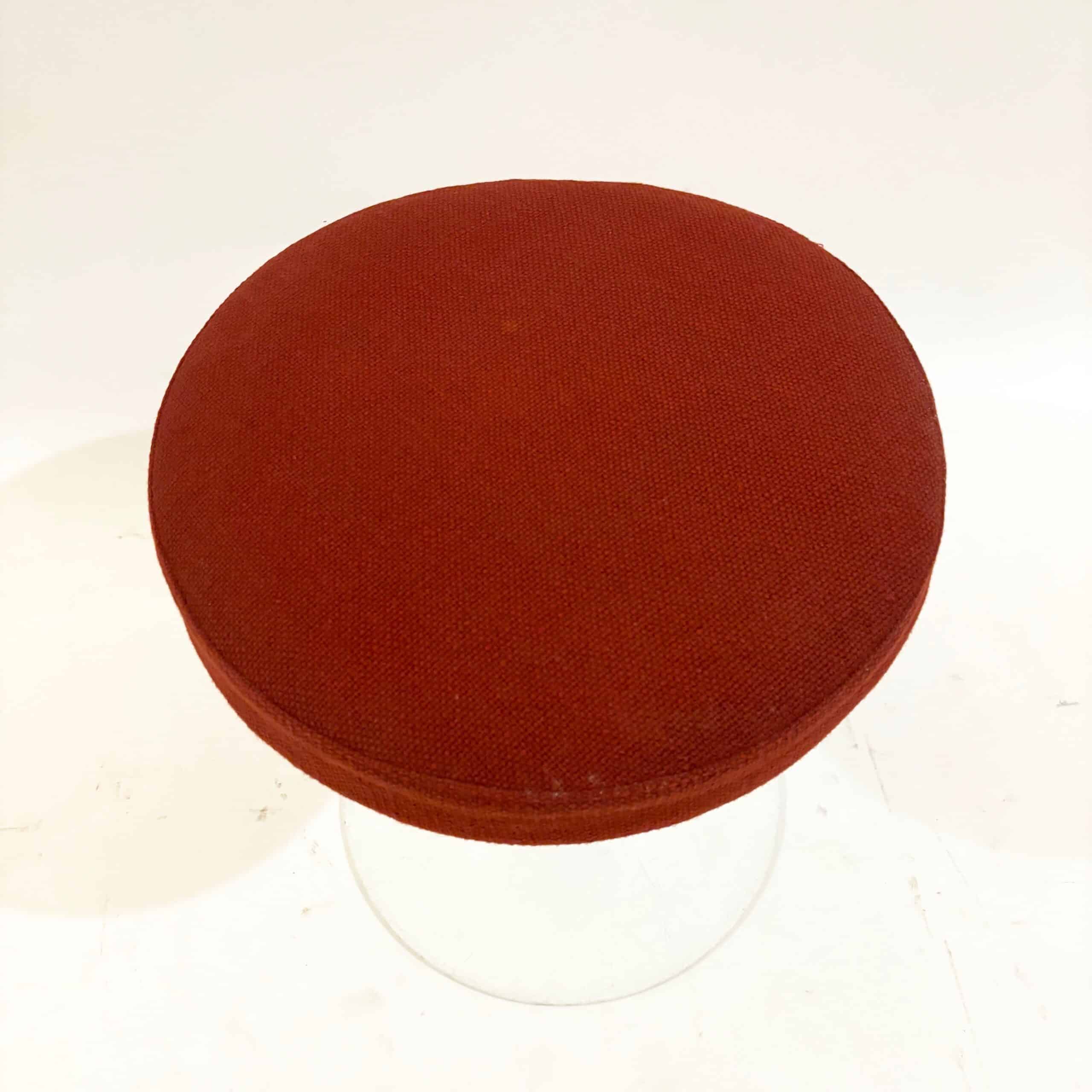 Magnifique tabouret des années 50, modèle Tulipe du designer Eero Saarinen pour Knoll, avec son tissu Kvadrat rouge d’origine. Il est pivotant.