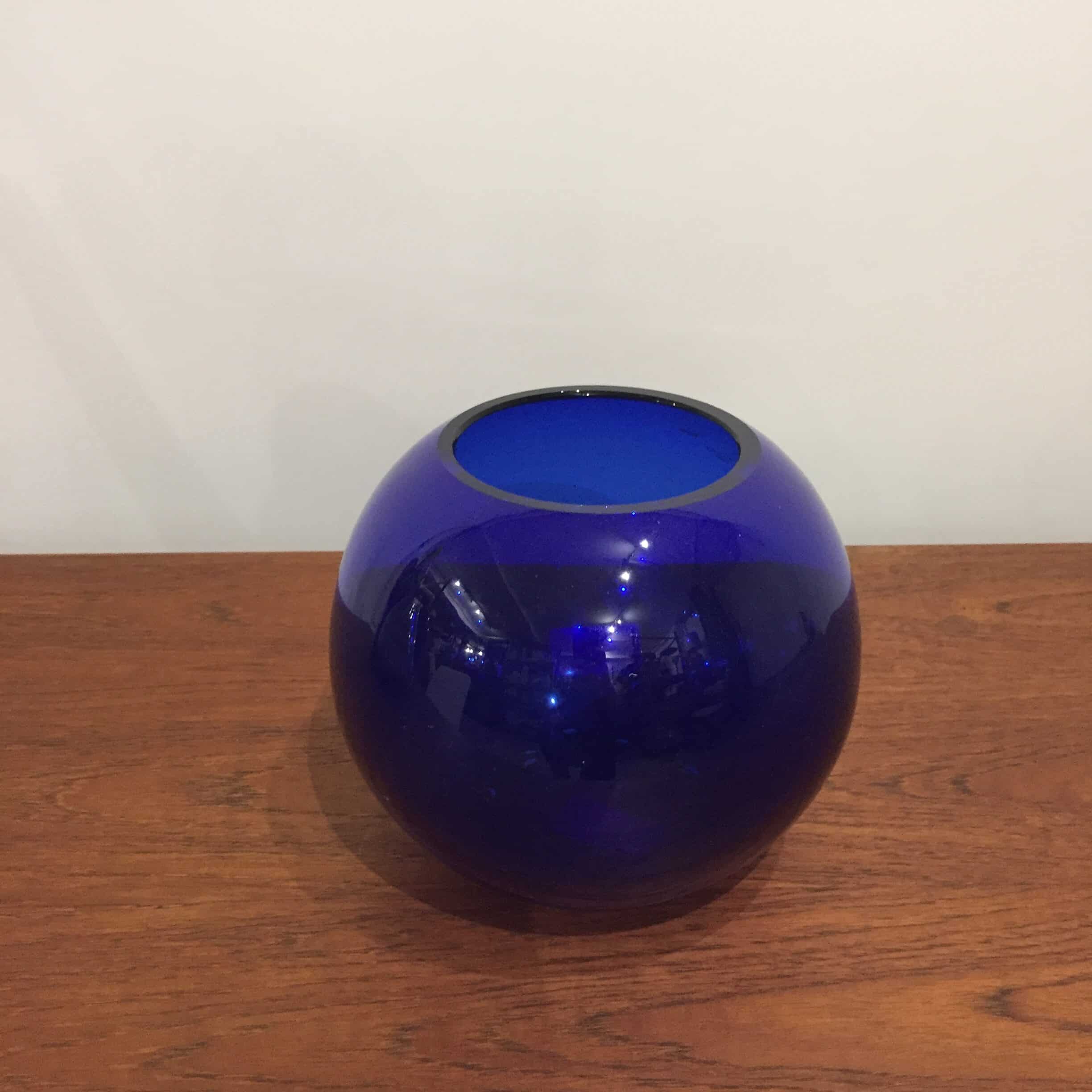 Joli vase en verre boule d’une belle couleur bleu profond.