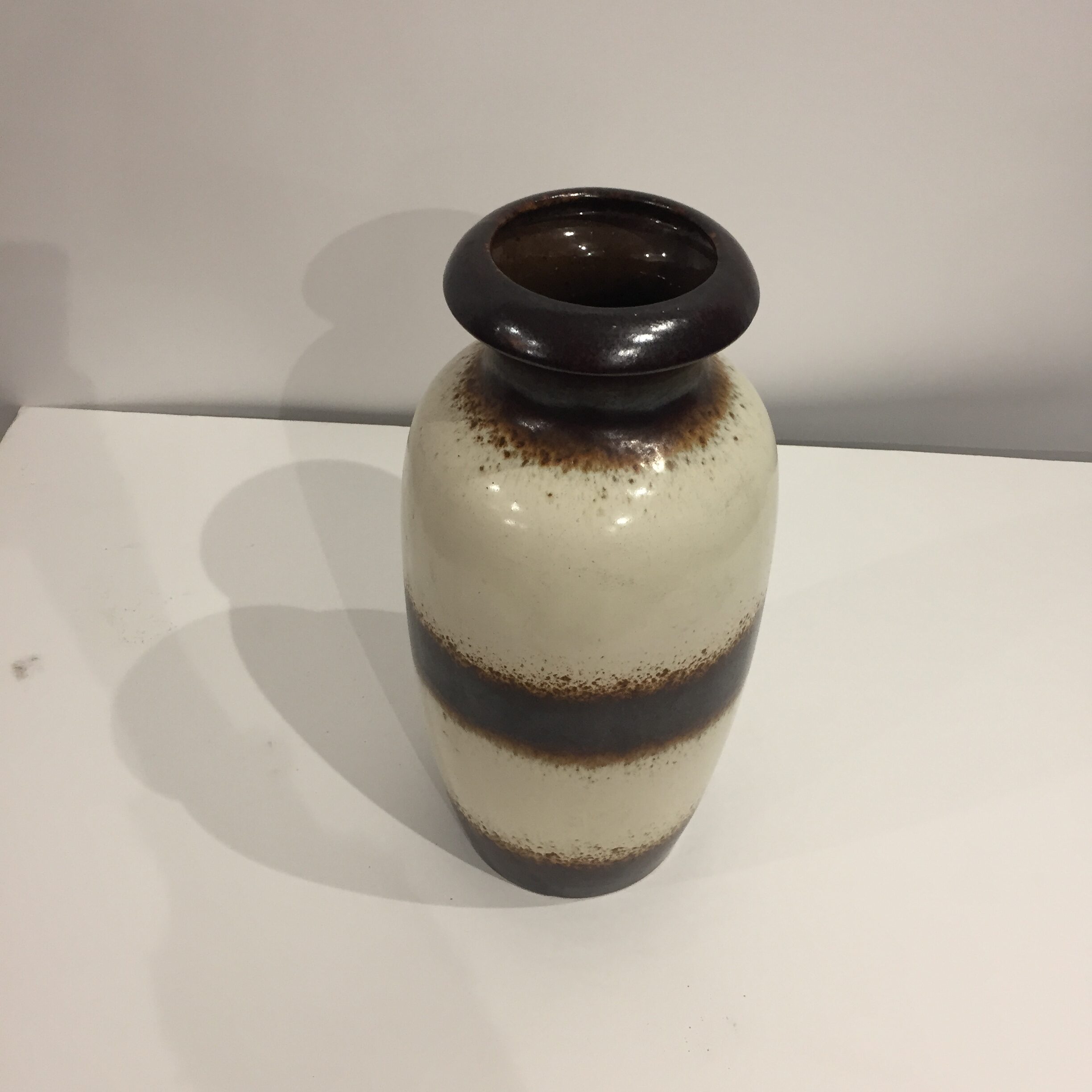 Joli vase en céramique West Germany des années 60 dans les tons crème et brun, parfait pour accueillir vos bouquets ou pour offrir.