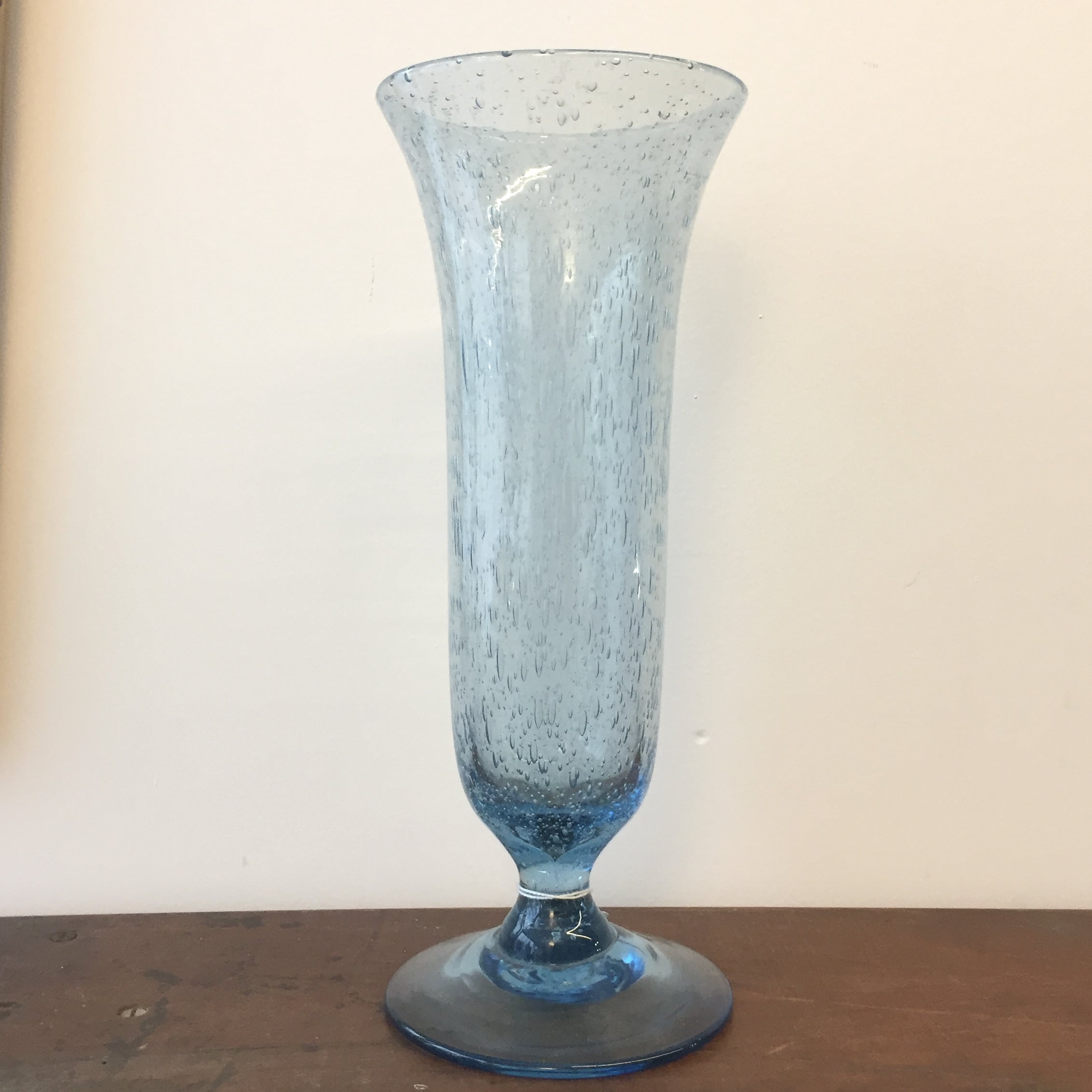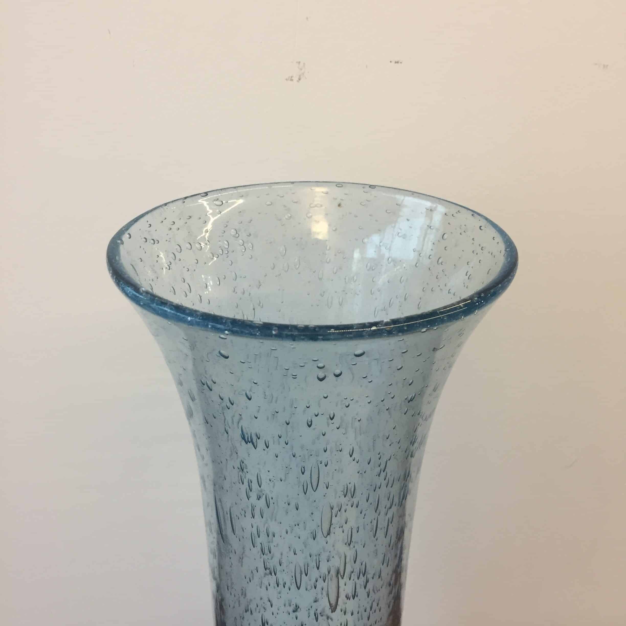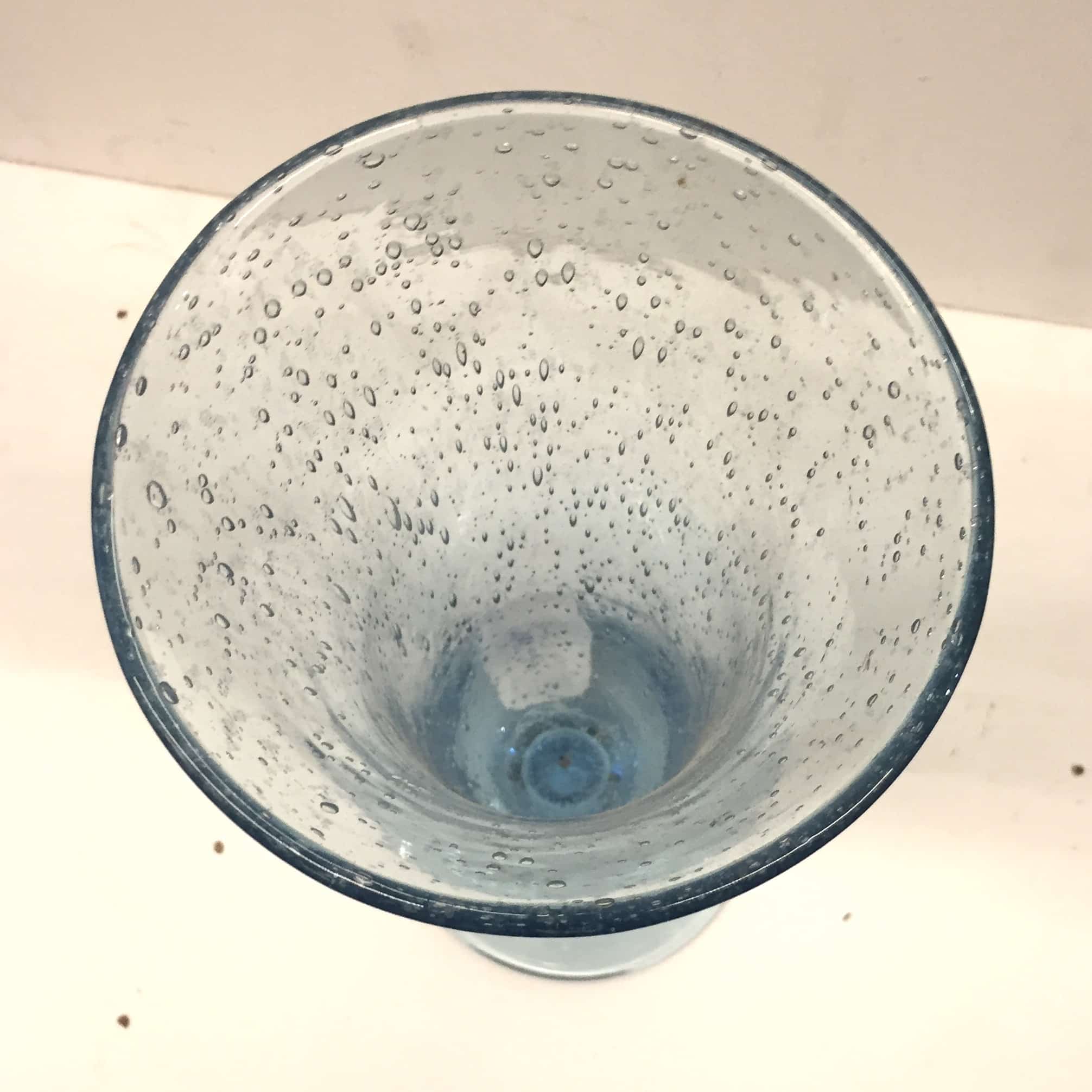 Joli vase en verre à bulles de couleur bleu ciel, dans le style des verreries de Biot.
