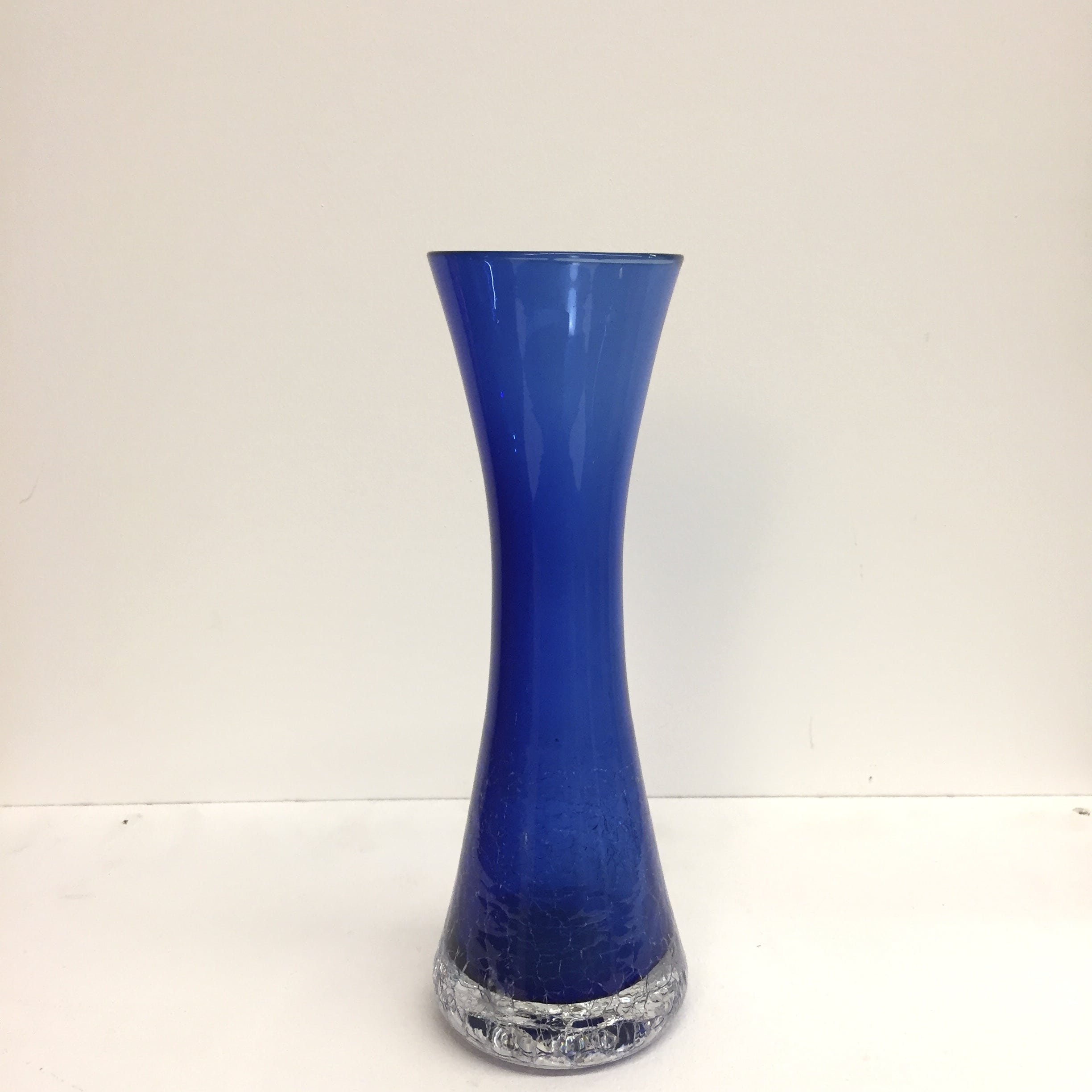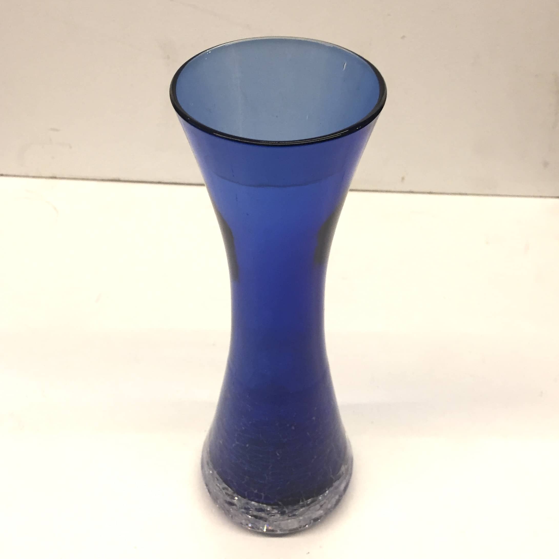 Joli vase en verre craquelé de couleur bleu nuit.