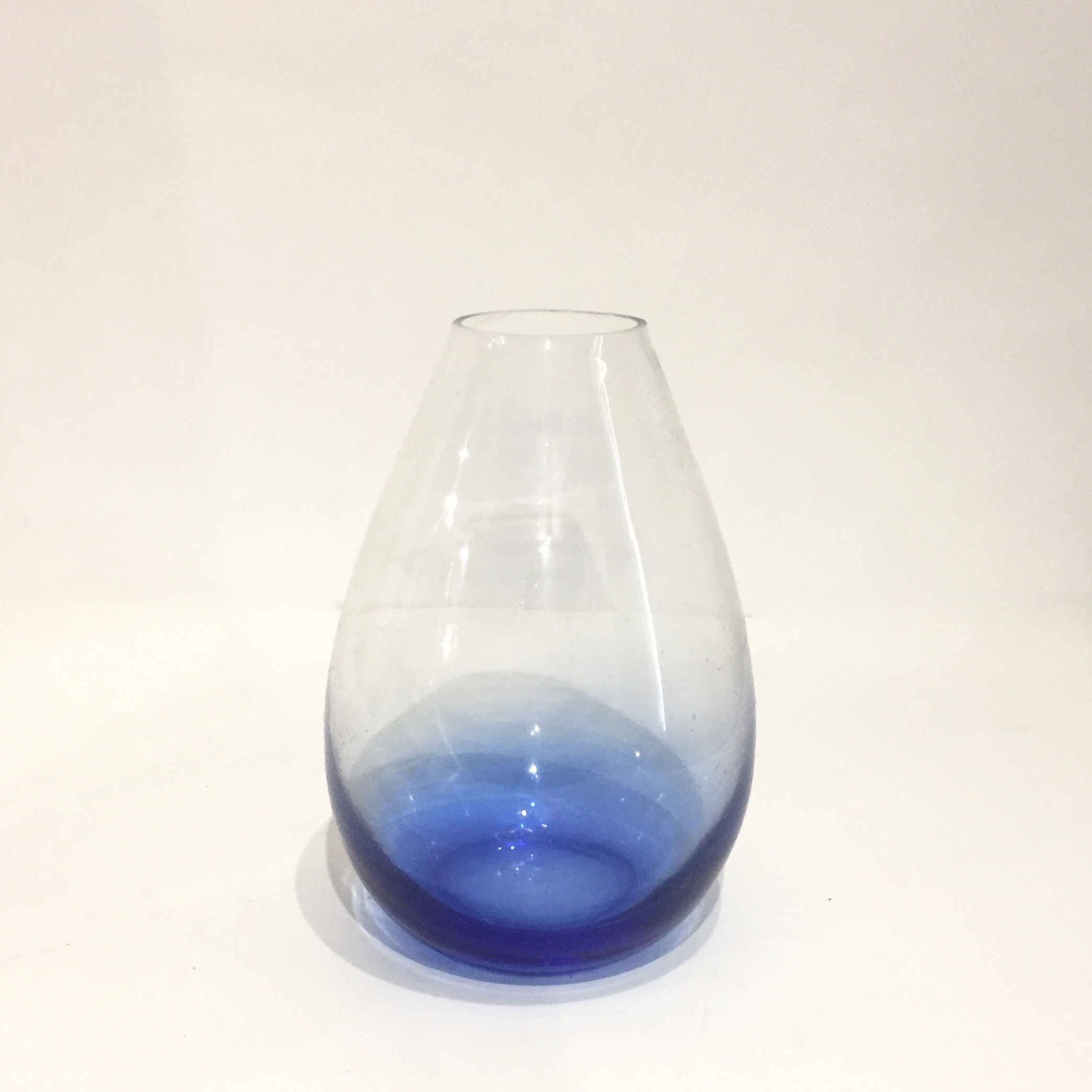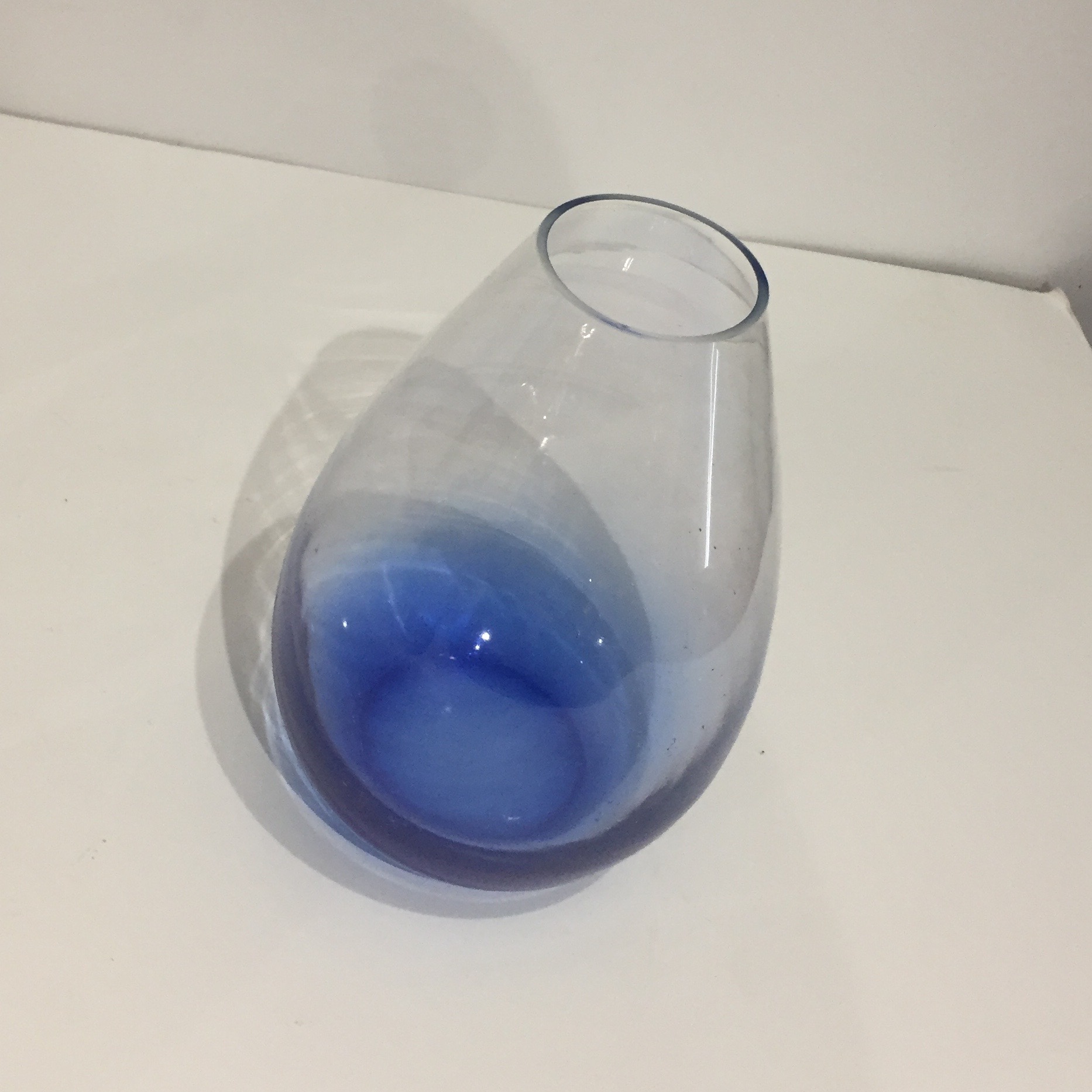 Très joli vase pansu en verre bleu.