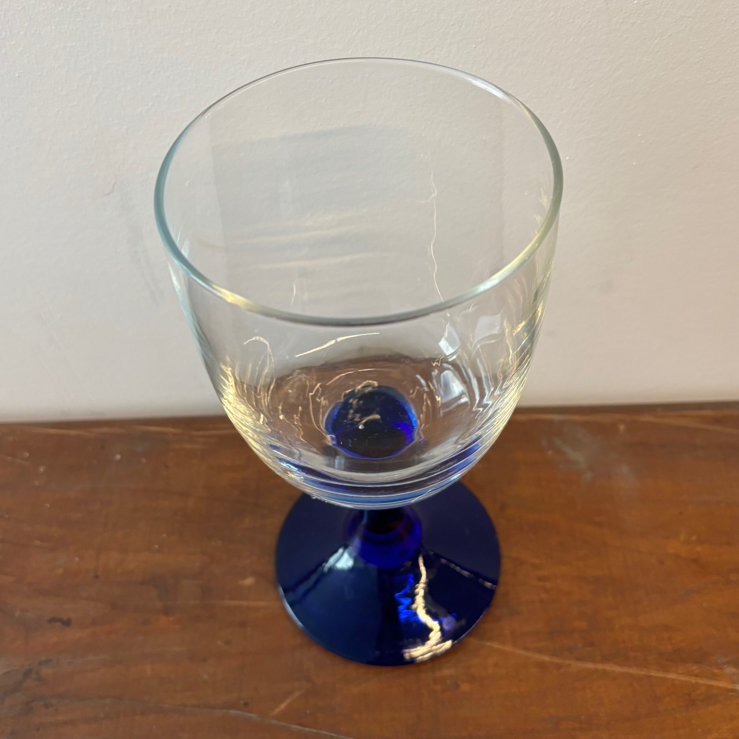 Très joli vase sur pied en verre bleu.