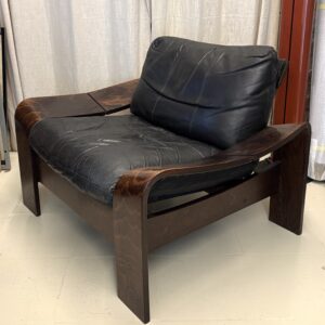 Paire de fauteuils scandinaves en cuir et palissandre